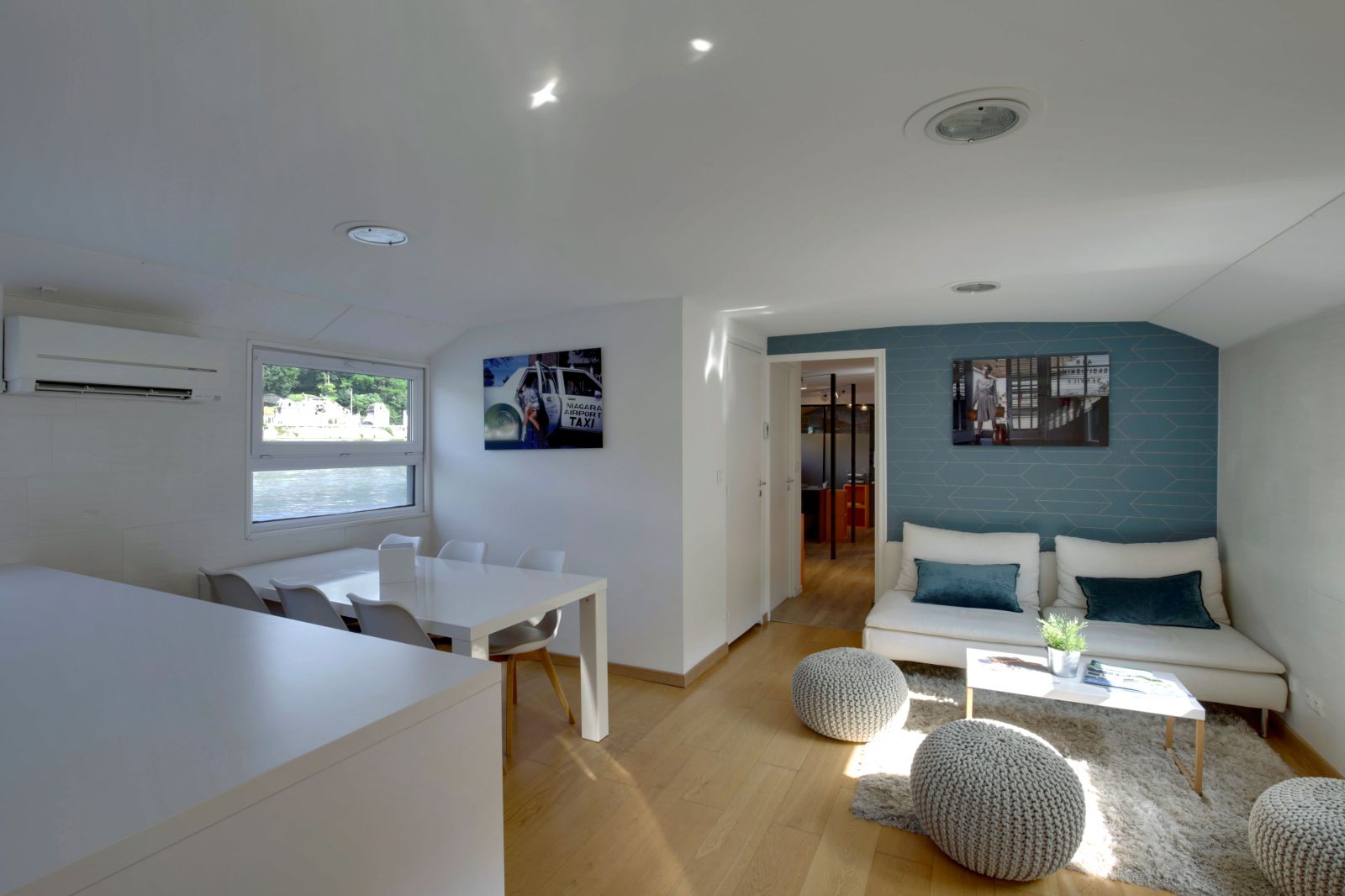 Venez découvrir vos futurs bureaux sur la Saône, une péniche entièrement rénovée en plein coeur de Confluence.