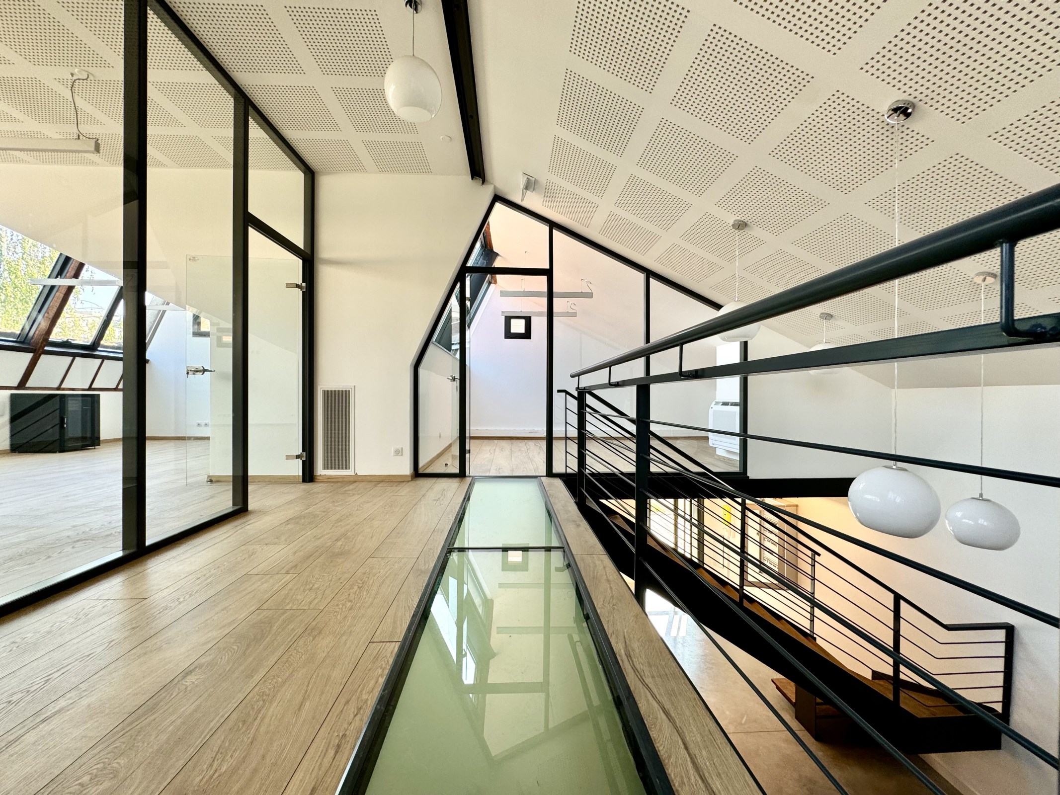 Nous vous proposons à la location 447 m² de bureaux cloisonnés. Cet espace est lumineux de par son étage élevé