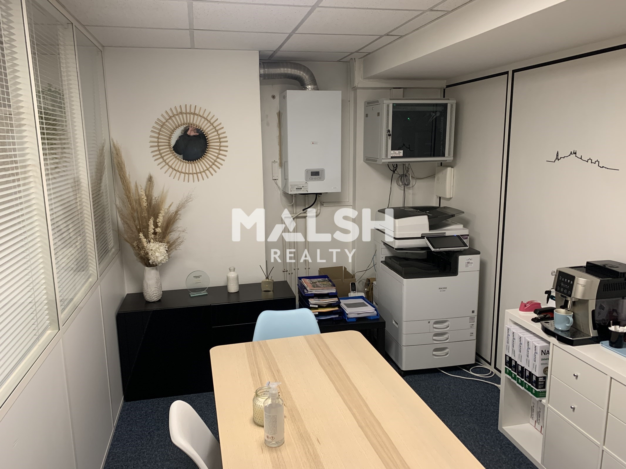 Dans un immeuble de seconde main avec un patio central, immeuble offrant une belle visibilité, plateau de bureaux cloisonné en bon état.Transports, points de restauration et commerces à proximité immédiate.
