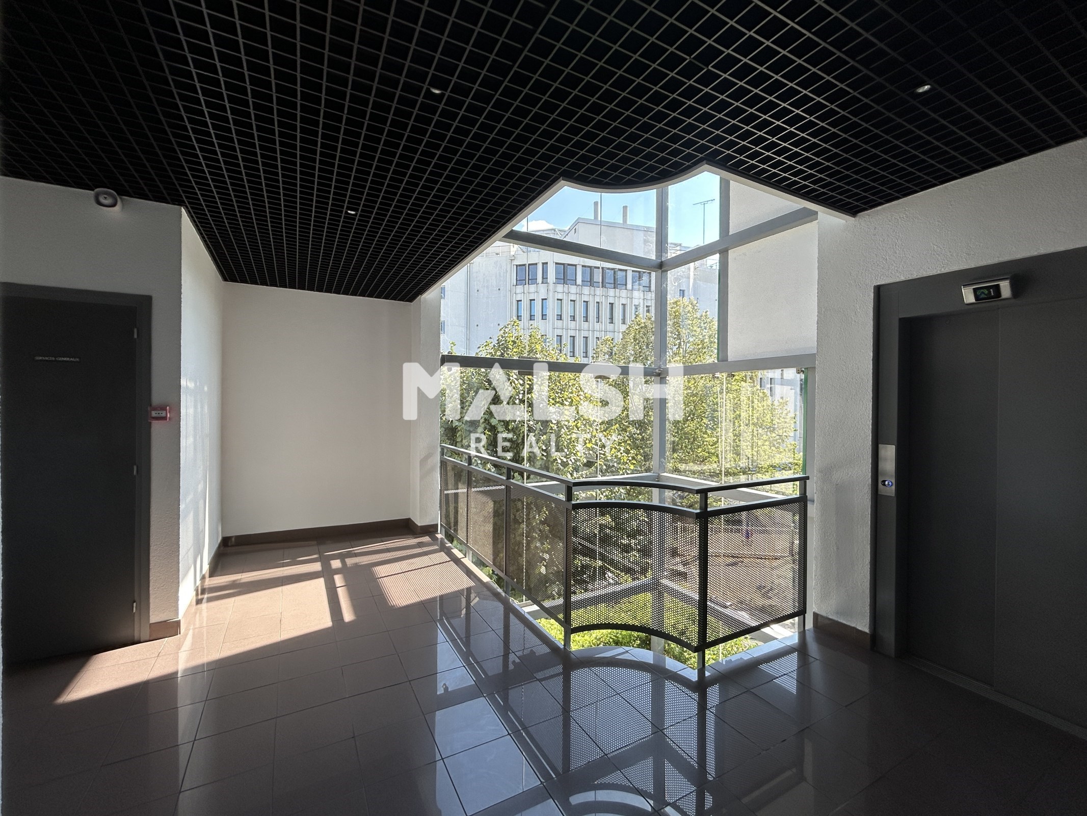 Immeuble de bureaux aux parties communes rénovées, situé à proximité immédiate des transports en commun et des grands axes routiers.