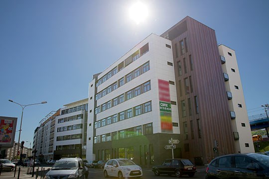 Immeuble de bureaux aux parties communes rénovées, situé à proximité immédiate des transports en commun et des grands axes routiers.
