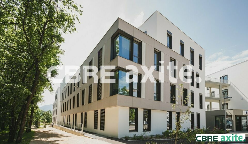 MEYLAN Inovallée, CBRE Axite vous propose à la location au sein d'un parc de 2 hectares équipé d'espace kiosque avec Wifi, un bel immeuble de standing d'une superficie totale d'environ 7 400 m² divisibles à partir de 154 m².Le bâtiment béné...