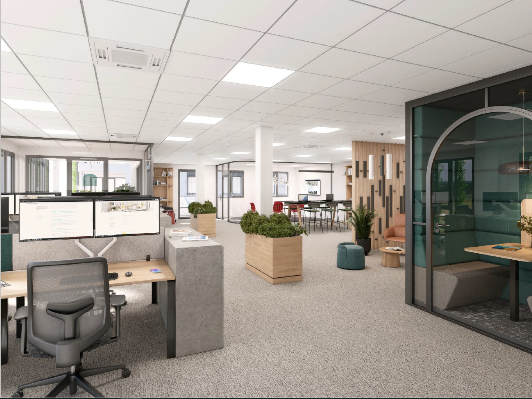 Au sein d'une zone d'activité, surfaces de bureaux disponibles à la location.