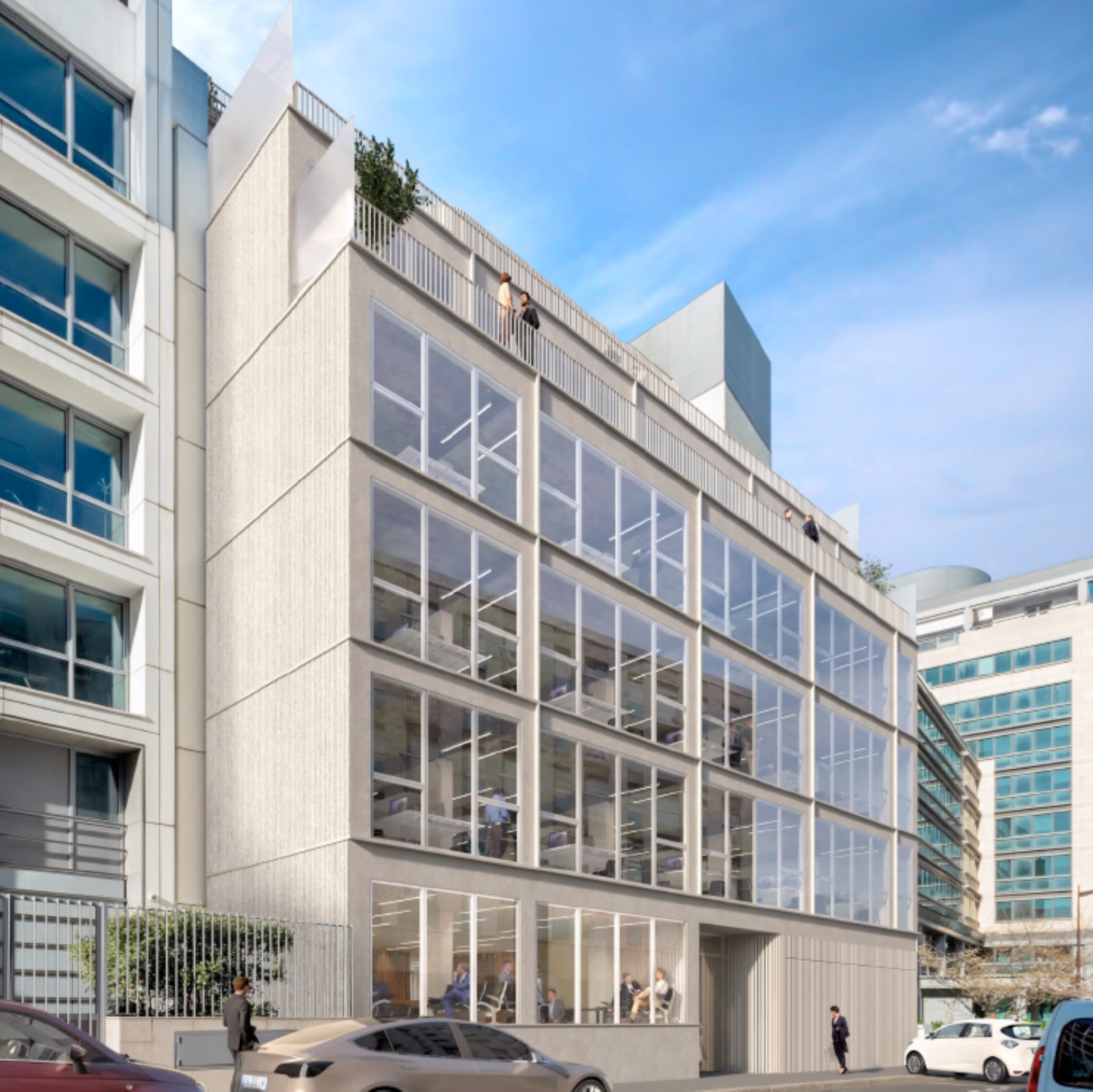 À louer bureaux à Neuilly 92200, dans le quartier animé et commerçant de la Place de Madrid. Un immeuble avec espaces extérieurs : un jardin commun au RDC, une terrasse privative au 5ème étage, seul étage ayant accès au rooftop du 6ème ! Les plateaux de 330 m²...