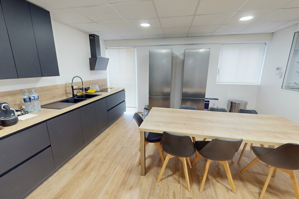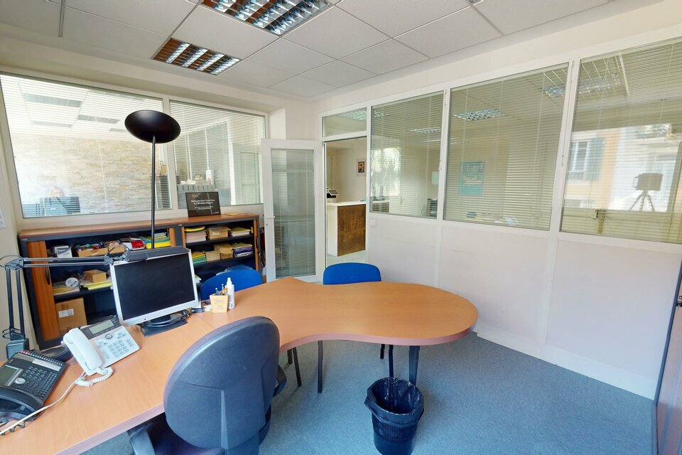 Bureaux de 92m² en rez-de-chaussée composés d'un accueil, de 4 bureaux, d'un coin cuisine et de sanitaires.