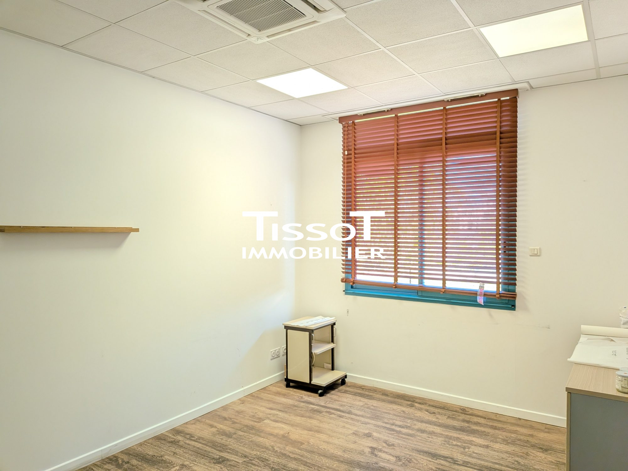 Situé au 1er étage de l'immeuble, ce plateau de bureau de 101 m² dispose d'un accueil, de deux salles d'attente, de trois bureaux d'environ 16m² chacun, une kitchenette et un WC.
