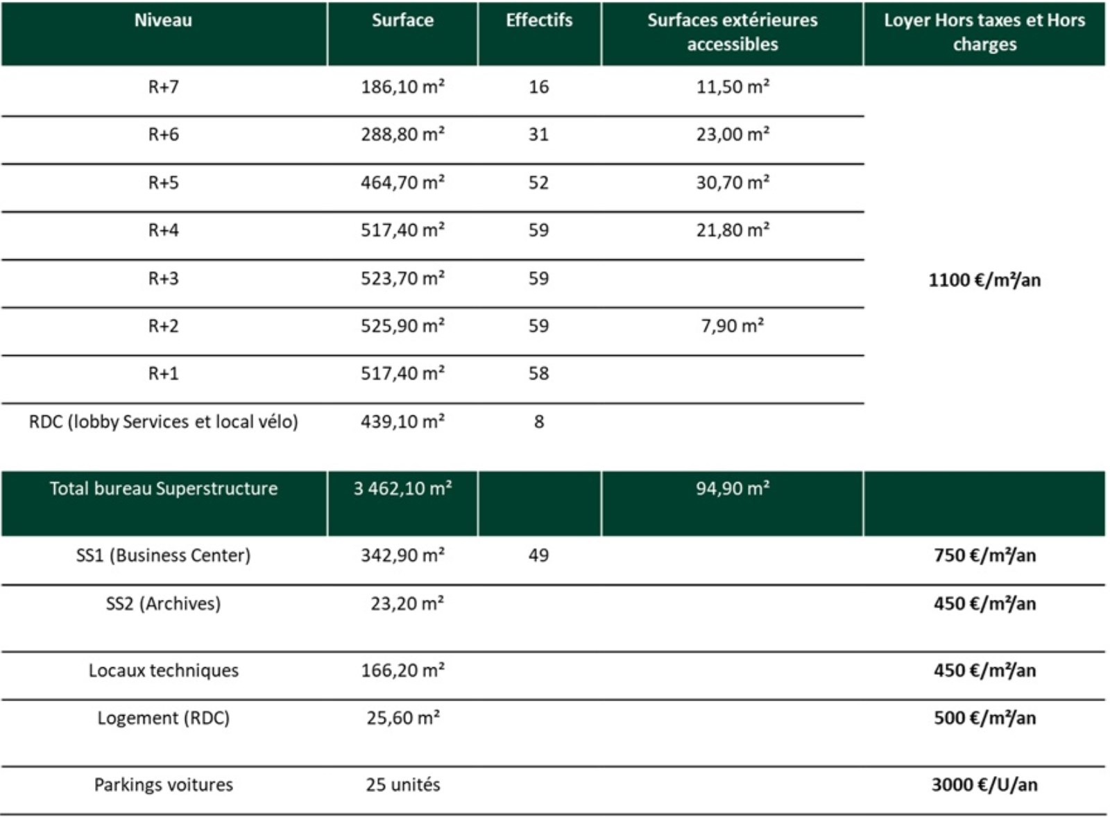 ? R+7 (188m²) : Surface aménagée en 1 entrée, 1 open space, 1 salle de réunion, 3 bureaux, 2 salles d'archives ...