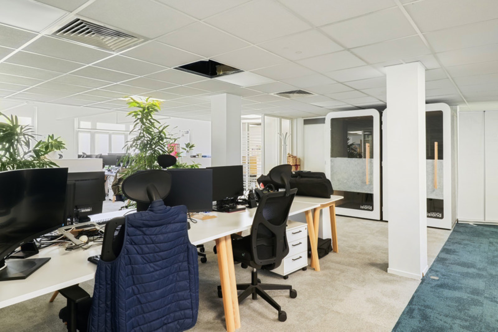 ? Aménagement mixte : open space et bureaux cloisonnés (actuellement 75 postes avec une possi...
