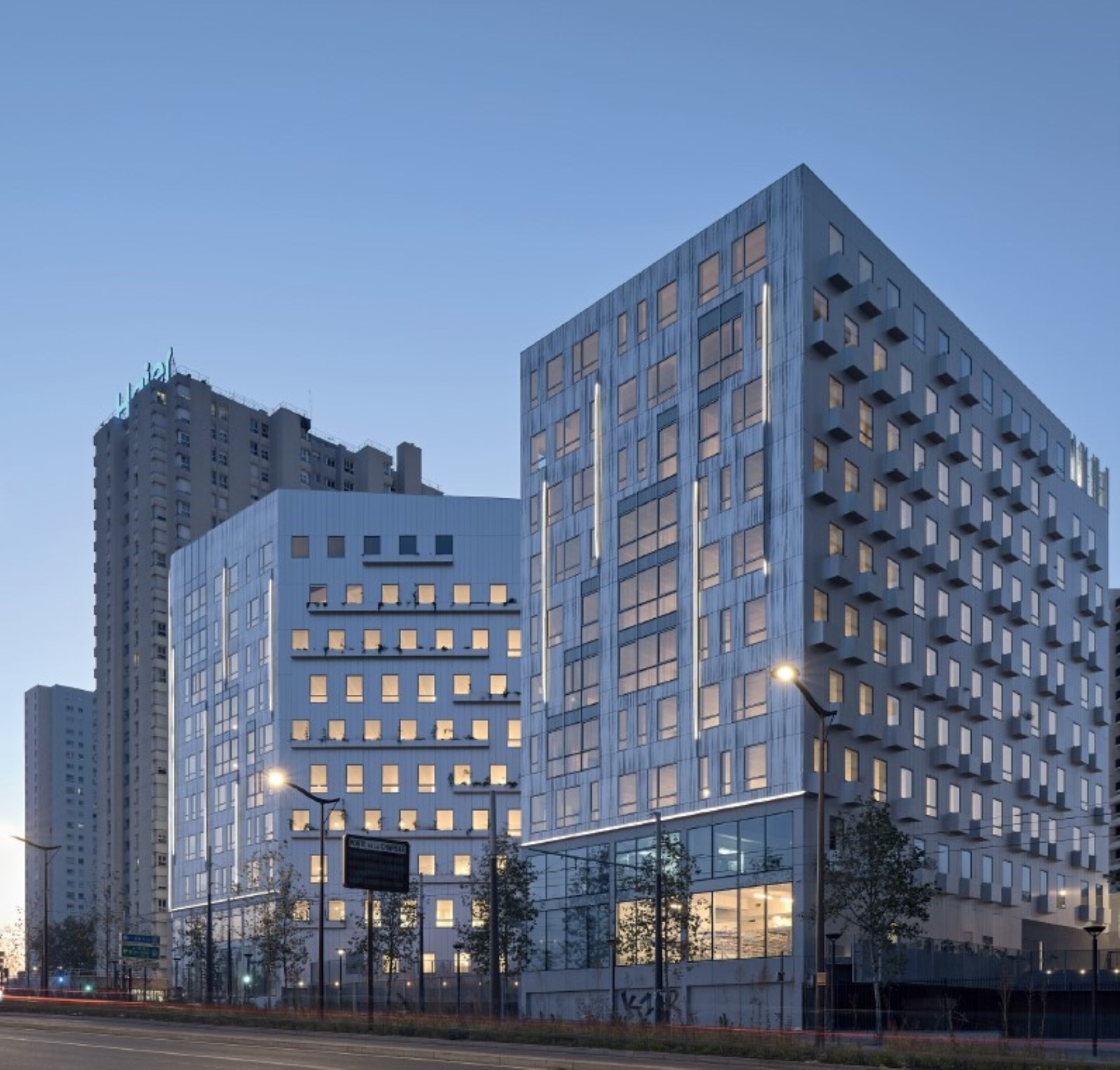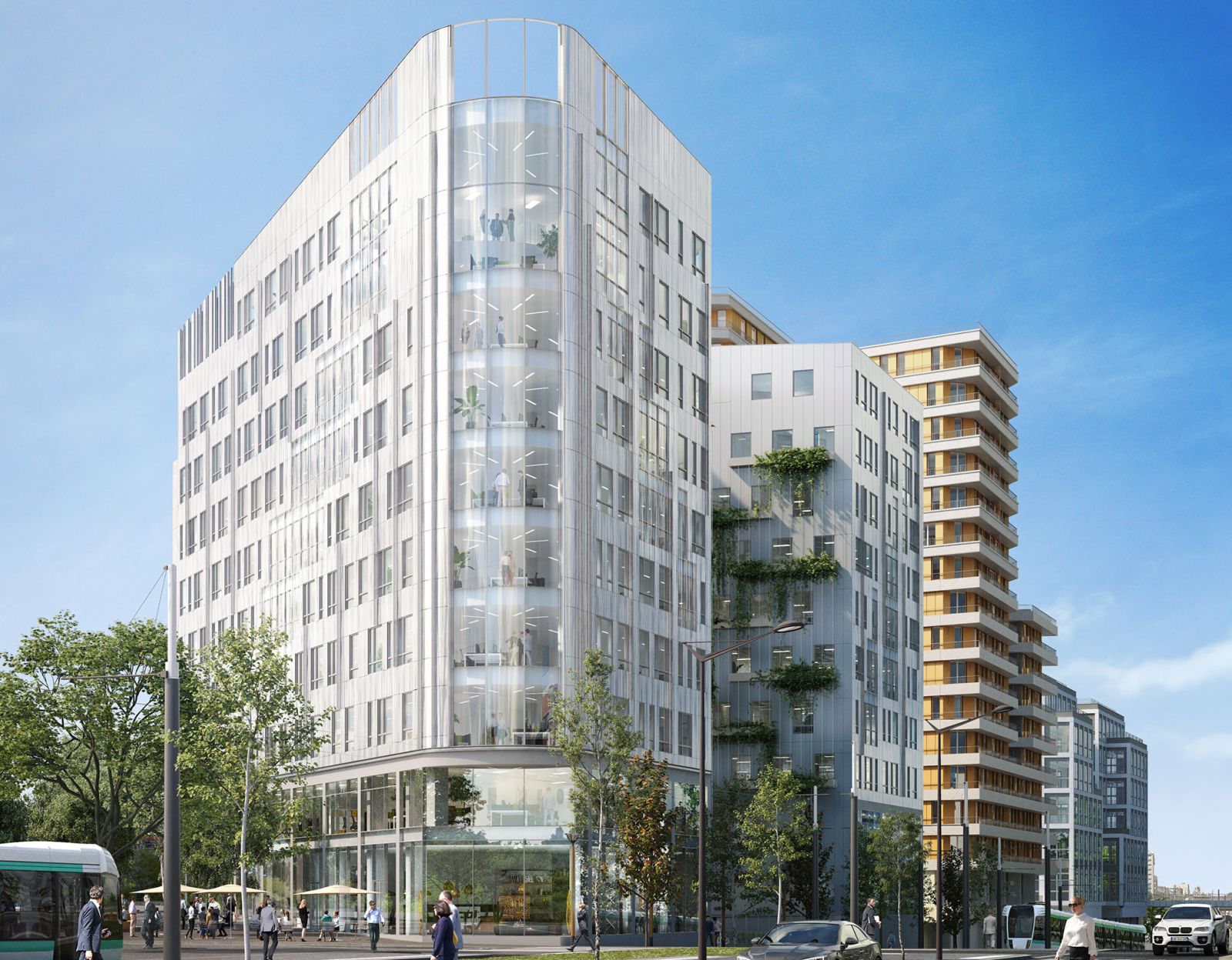 A louer, immeuble neuf de bureaux au pied du métro (ligne 12 Porte de la Chapelle), avec une visibilité exceptionnelle (périphérique, RER, TGV, le Thalys).