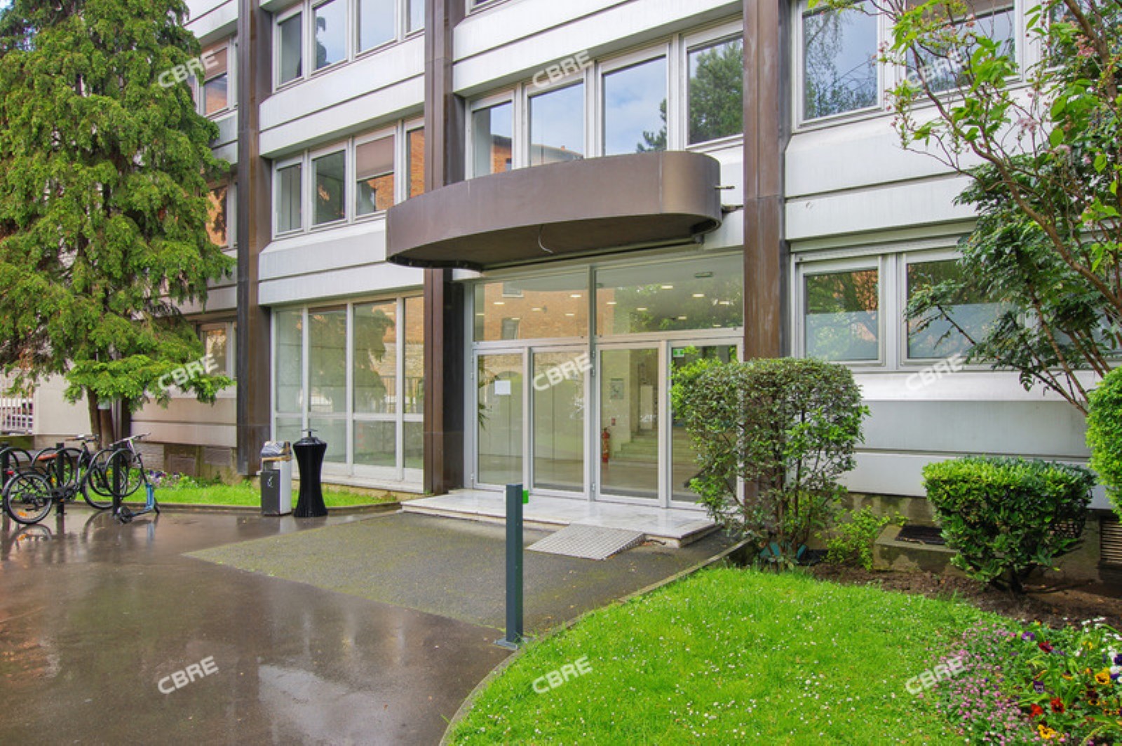 Bel ensemble de bureaux rénové et prêt à l'emploi bénéficiant d'un vaste jardin privatif. ERP 3 possible dans les étages bas. Beaux espaces de restauration, business center et fitness.