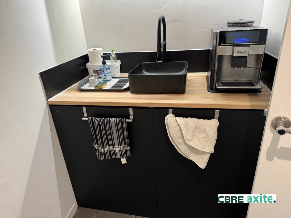 Au 1er étage d'un local récent, un plateau de bureaux loués finis. Possibilité d'utiliser ponctuellement une salle de réunion.