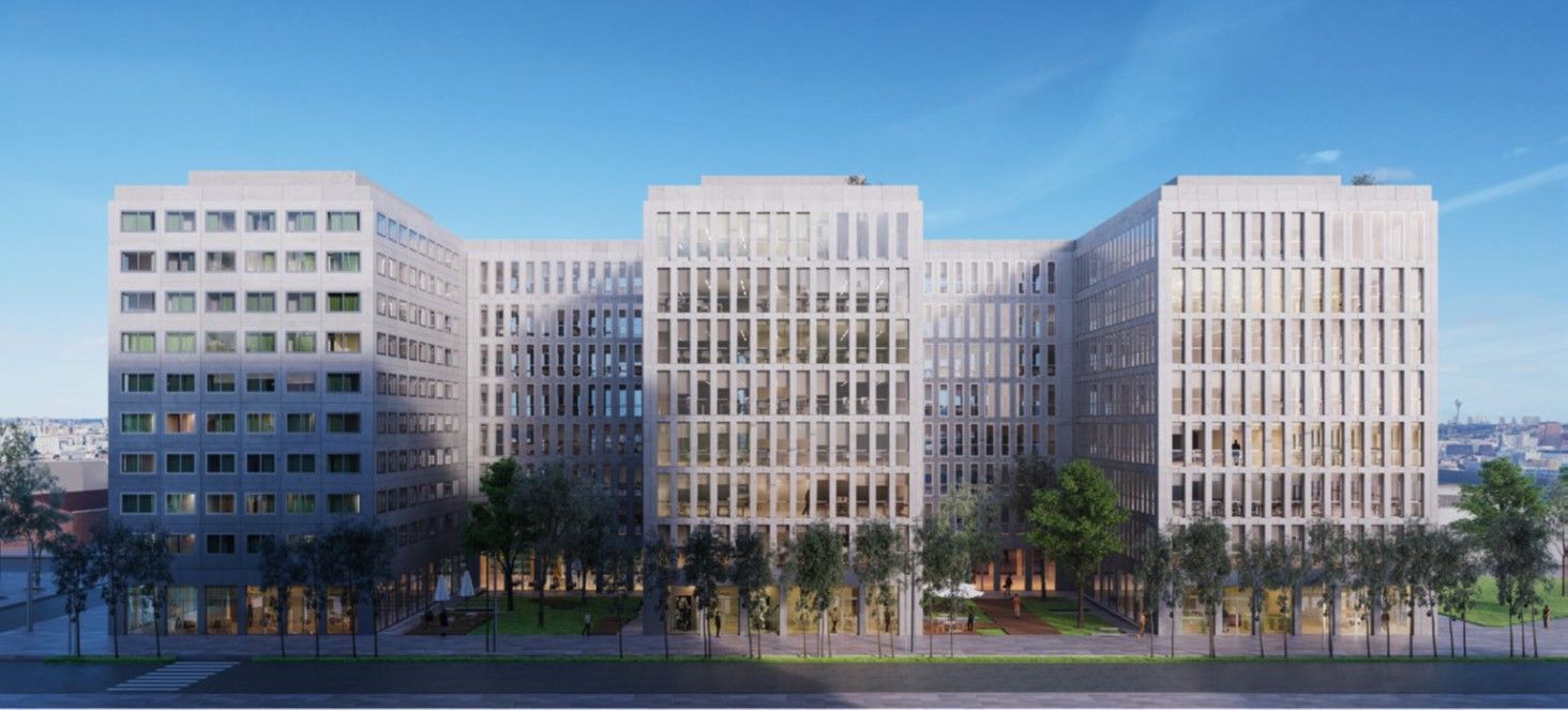 Au pied du futur complexe hôtelier de la Tour Pleyel, 2 immeubles de bureaux neufs (Code du Travail et IGH) viennent clôturer l'aménagement du site tertiaire.