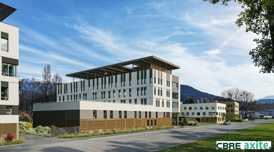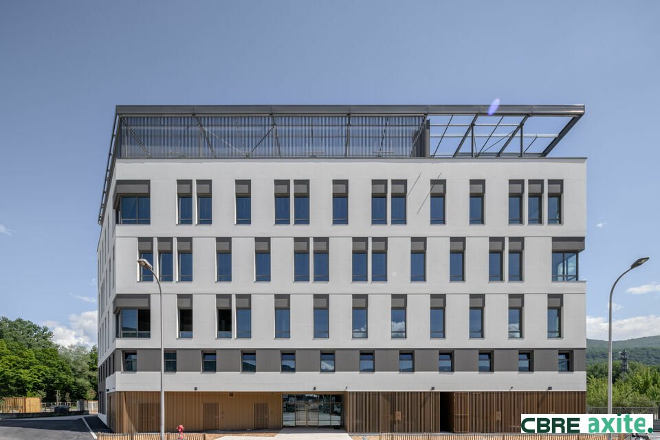 Axite CBRE propose à la location un bel immeuble indépendant de 2 803 m² de bureaux neuf, disponible à la location et à la vente, situé à l'entrée du Campus Universitaire de ST MARTIN D'HERES.Chaque niveau dispose d'une terrasse privative avec v...