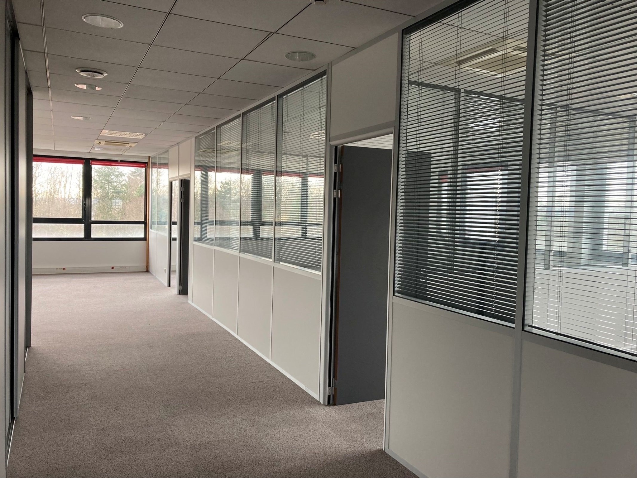 Plateaux de bureaux rénovés (peinture, moquette), prêts à être cloisonnés.