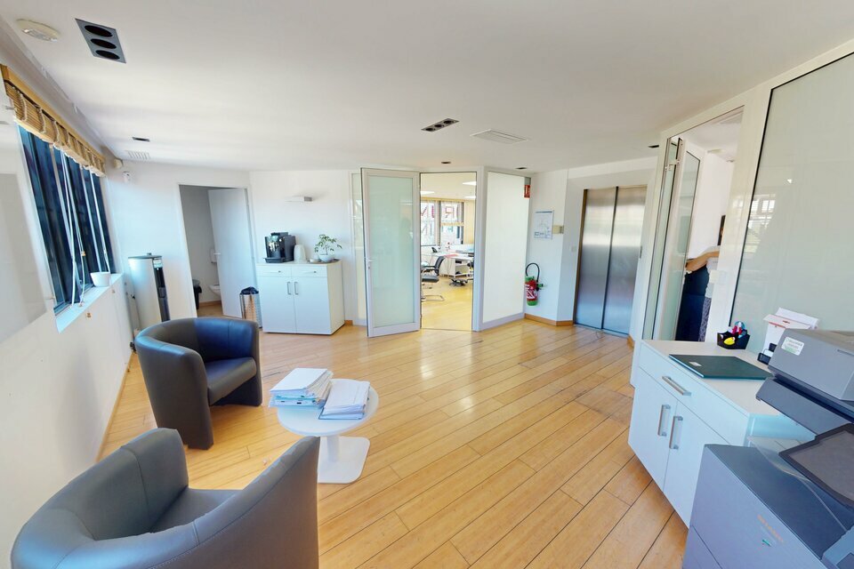 Bâtiment indépendant de bureaux de 430m² sur plusieurs niveaux, offrant un accueil, des étages de bureaux, un étage de Direction et de nombreux stationnement privatifs et visiteurs.L'ensemble est en excellent état et offre des très belles prestations.Poss...