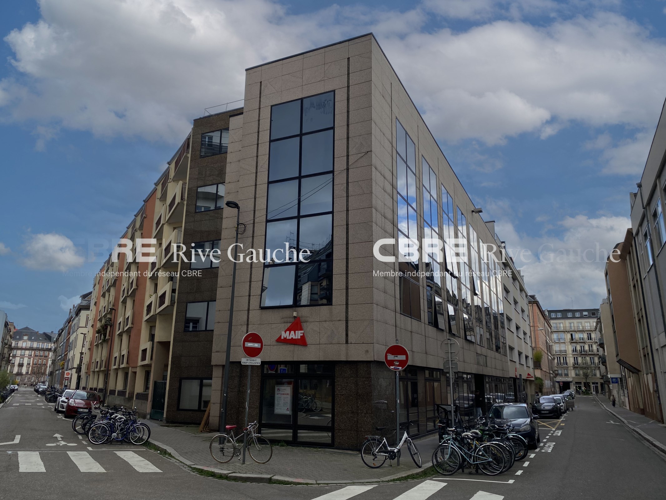 Rive Gauche CBRE vous propose des bureaux à louer au pied d'un immeuble en R+7 situé à Strasbourg, quartier Vosges.