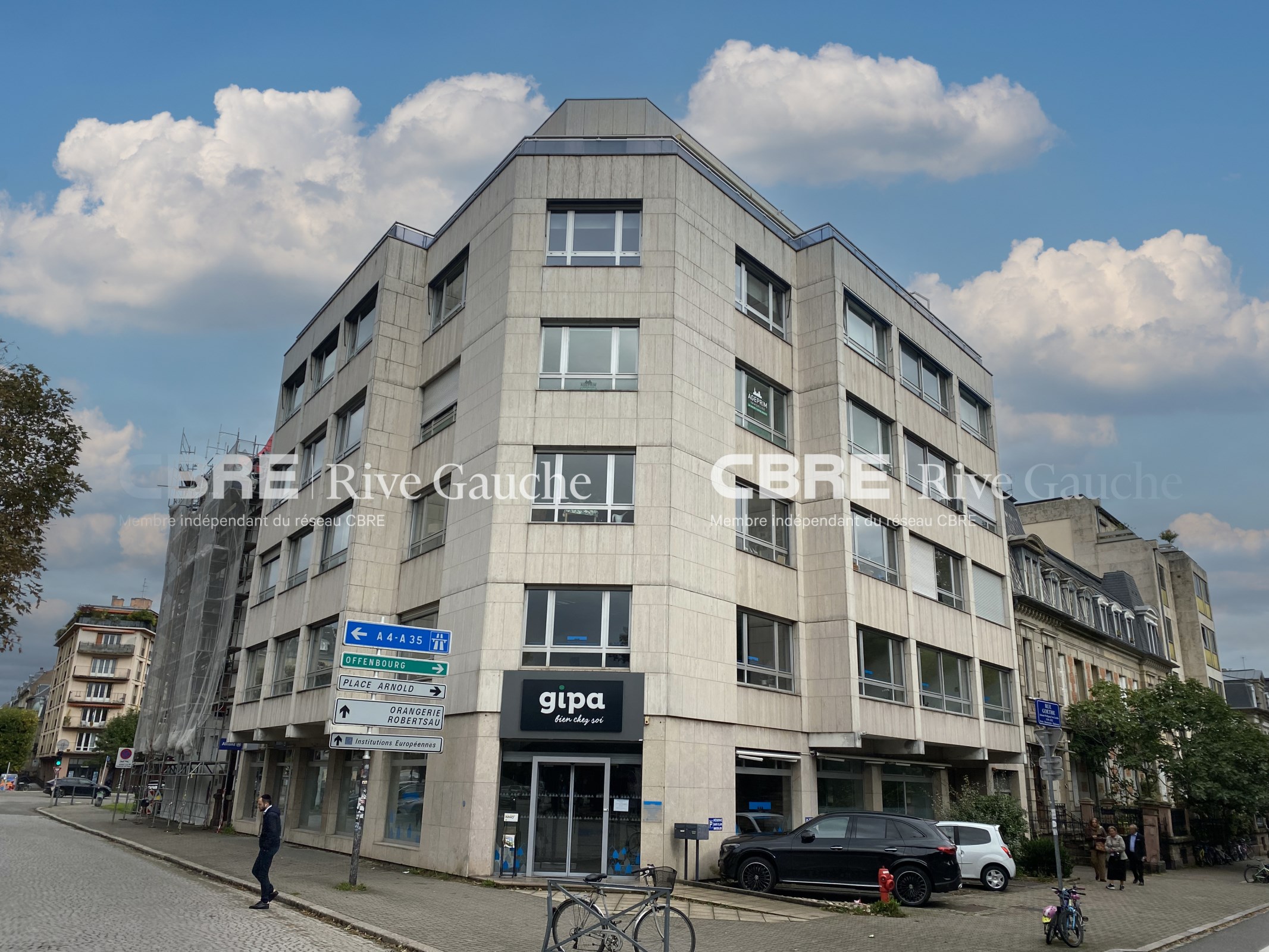 Rive Gauche CBRE vous propose des bureaux à louer au pied d'un immeuble en R+7 situé à Strasbourg, quartier Vosges.