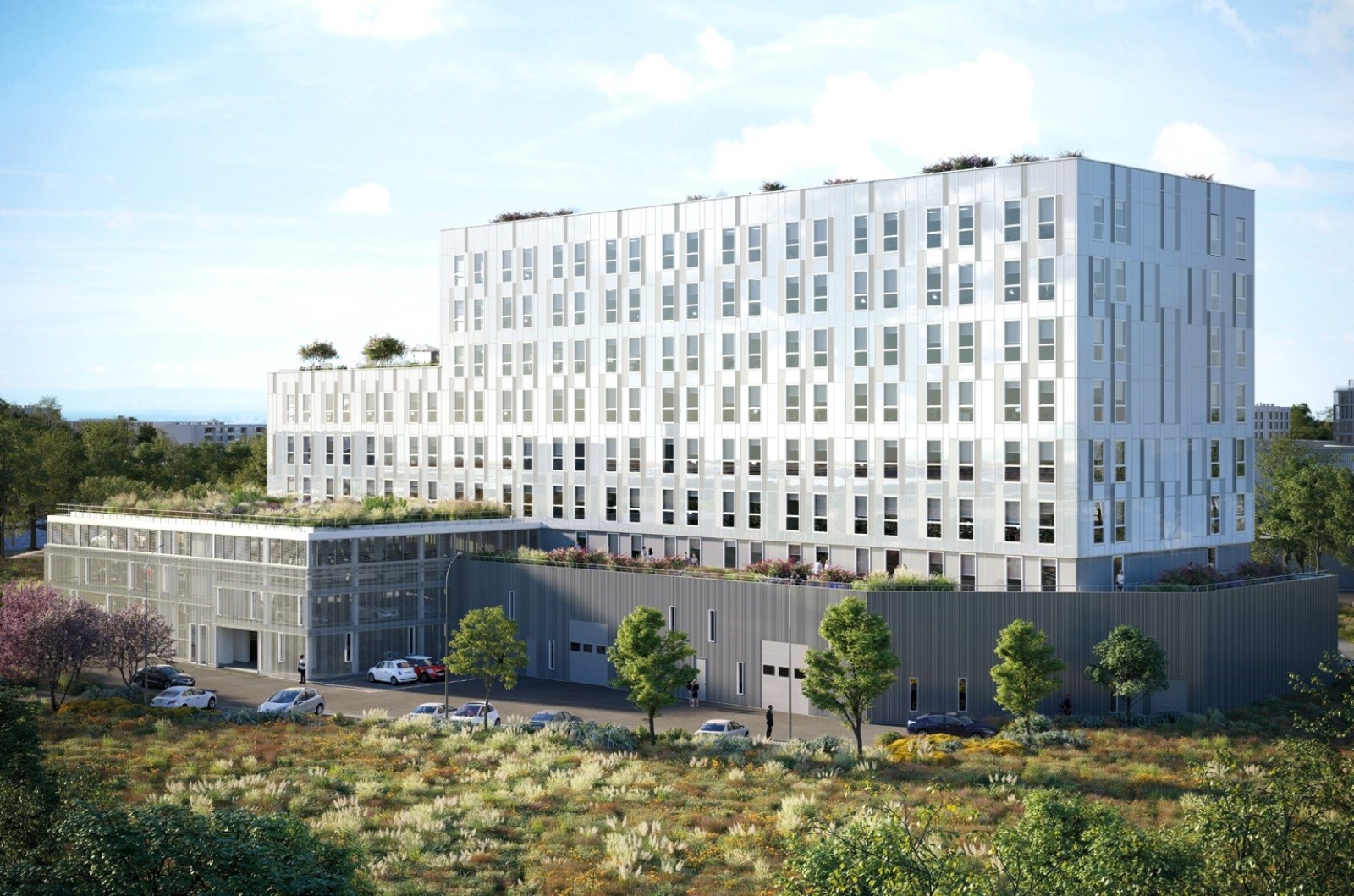 Bureaux neufs à vendre ou à louer sur le parc tertiaire de Borderouge à TOULOUSE. Immeuble à construire. Terrasses. Belle visibilité. ERP. Environnement commercial. Accès direct par la rocade. Métro et bus.