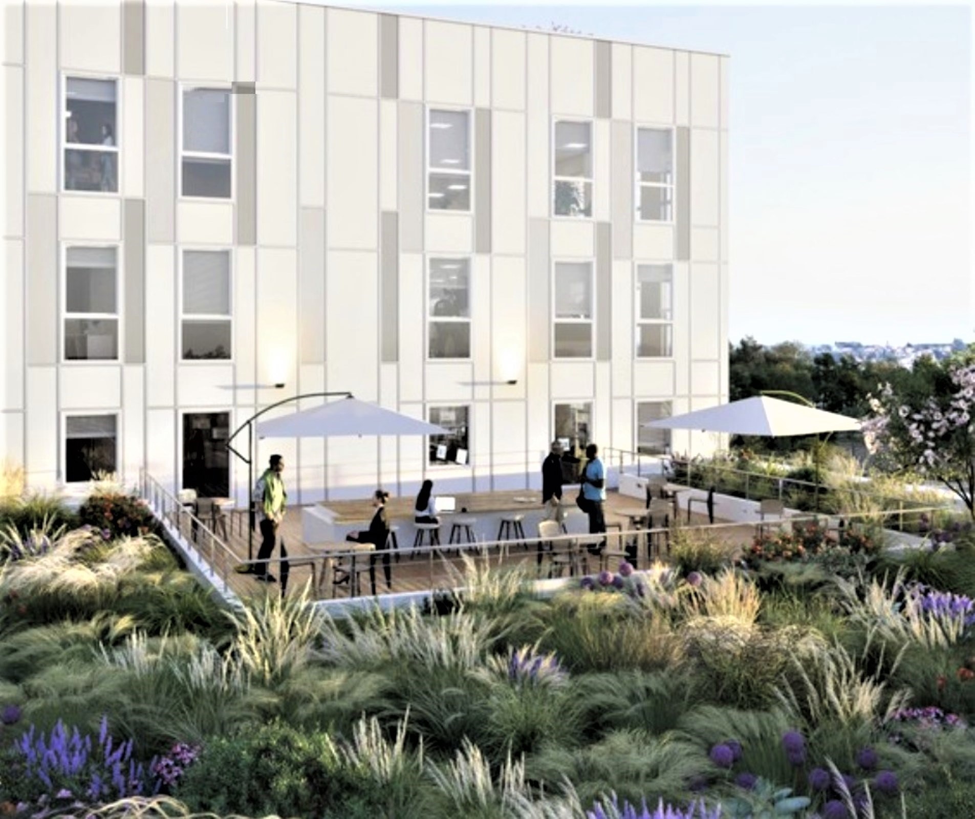 Bureaux neufs à louer à TOULOUSE, en façade de l'Avenue de Grande Bretagne, au coeur de Purpan. Tramway à proximité immédiate. Immeuble et locaux de belles prestations.