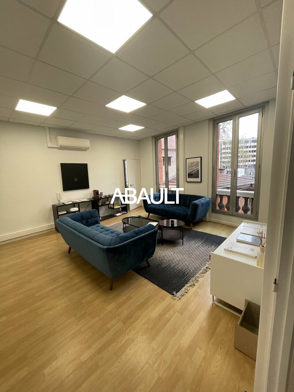 A LOUER - BUREAUX D'ENVIRON 65M² TOULOUSE HYPER CENTRESitués au 1er étage d'un immeuble, ces bureaux sont constitués d'une salle d'attente ainsi que de 2 bureaux.Clim réversible, double vitrage. La surface est en cours de rénovation.Loyer m...