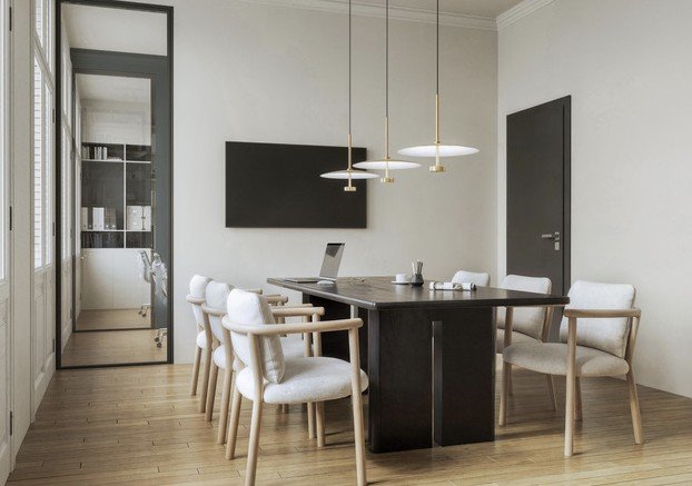 Au 1er étage d'un immeuble moderne avec ascenseur, découvrez une surface de 145 m² entièrement aménagée en bureaux.
