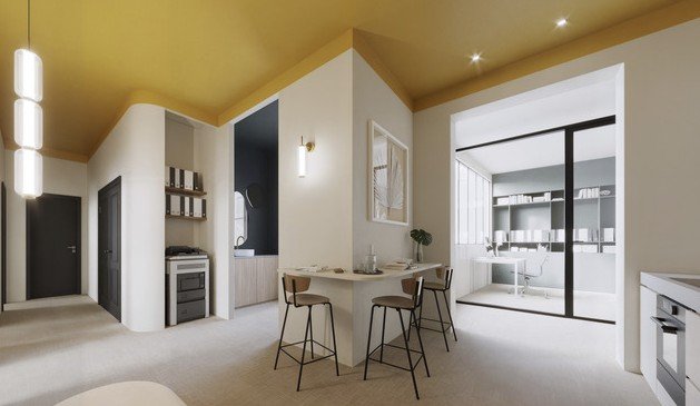 Au 1er niveau d'un immeuble de 4 étages, profitez d'un espace de 64 m² déjà aménagé en bure...