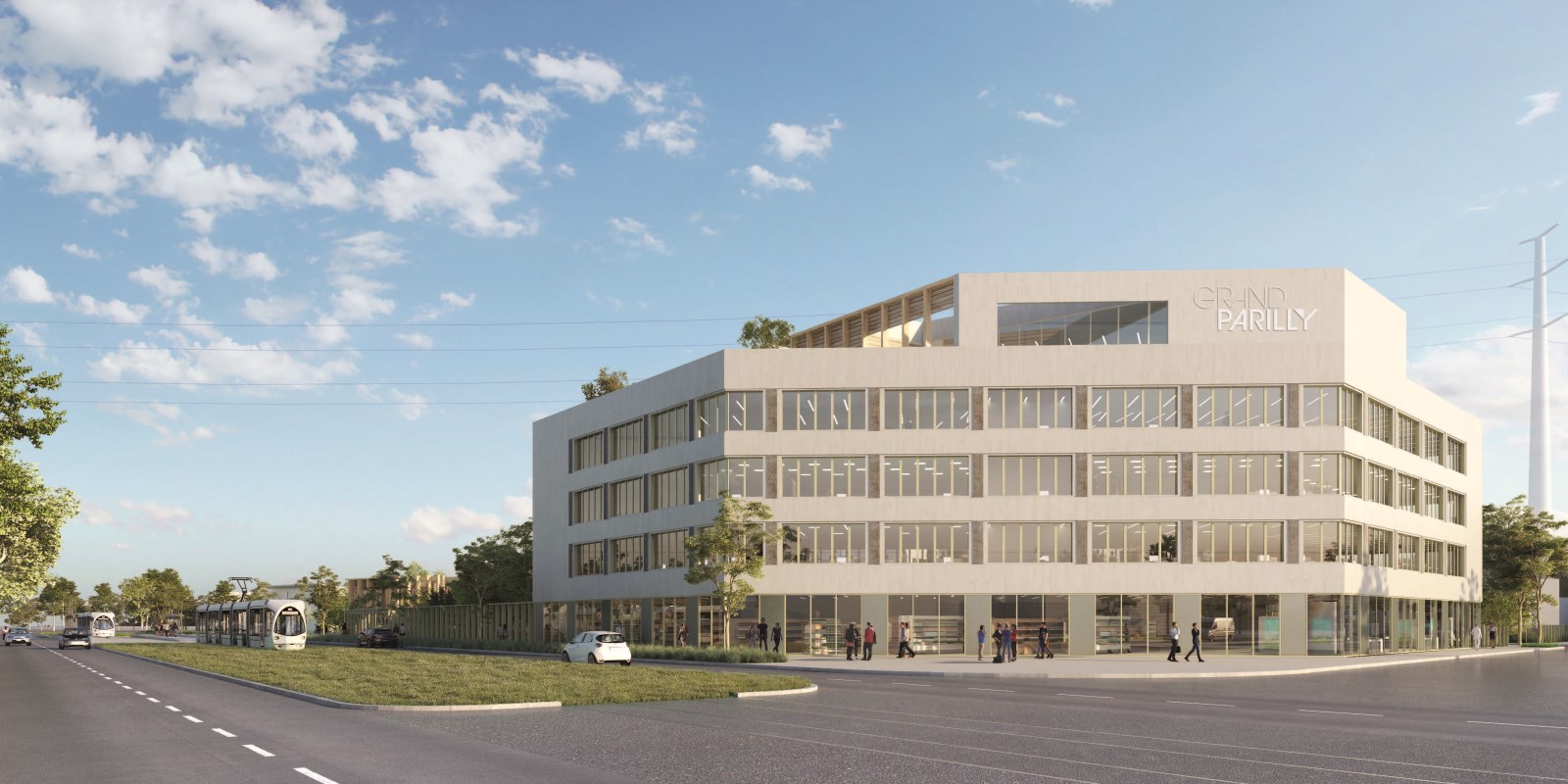 Omnium vous propose des bureaux neufs dans cet immeuble signature, situé au coeur du nouveau quartier de Grand-Parilly.