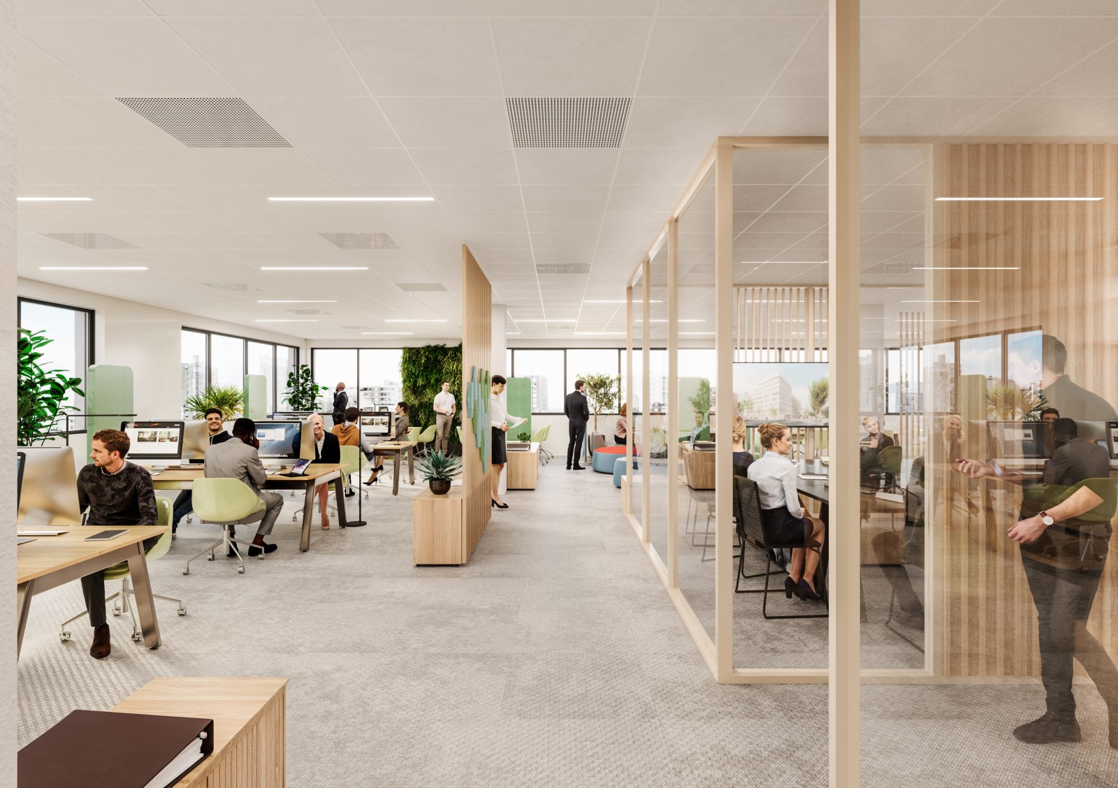 A moins de 15 minutes de la Part Dieu, au coeur du quartier tertiaire et hyperconnecté de Carré de Soie, nous vous proposons 2 plateaux de bureaux dans un ensemble immobilier composé de 2 bâtiments de bureaux neufs construction 100% bois avec dalle béton.