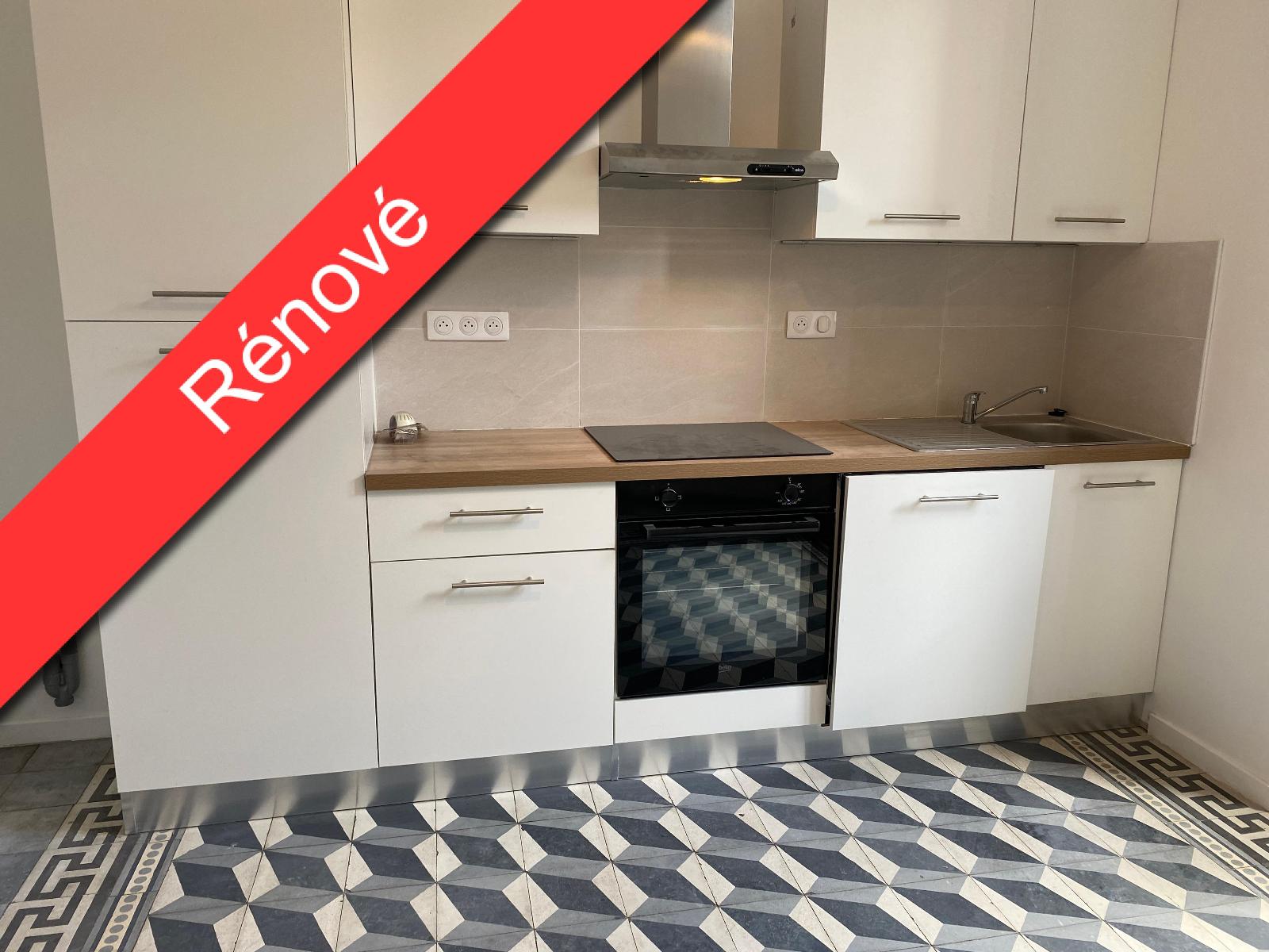 Séjour de 21m², avec cuisine semi équipée neuve (plaque, hotte aspirante), 2 chambres d'environ 9m²,