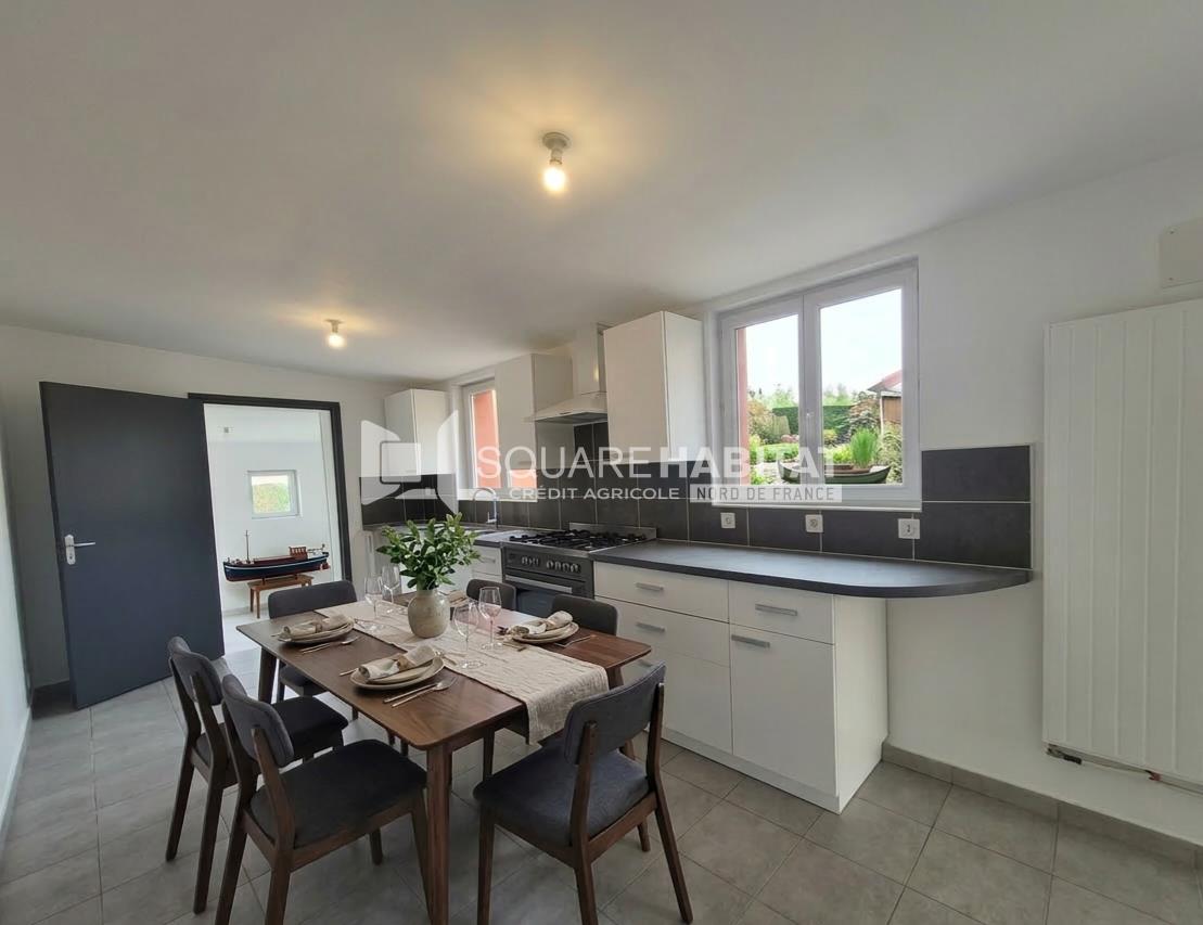 Maison de ville de 58 m² comprenant Salon-séjour, cuisine aménagée et semi-équipée, salle d'eau, wc,