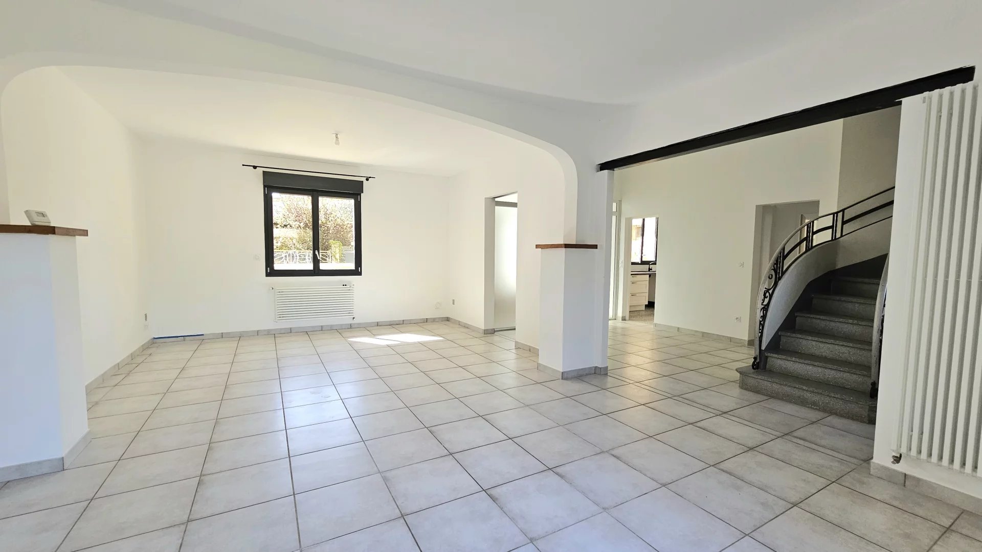 Rare villa type 5 louée vide sur 1300m² de terrain arboré dans un quartier résidentiel et une impasse calme sans passage. Entrée avec placard, une grande cuisine aménagée donnant sur une terrasse plein sud, un salon en contrebas, un dégagement desservant 4 cha...