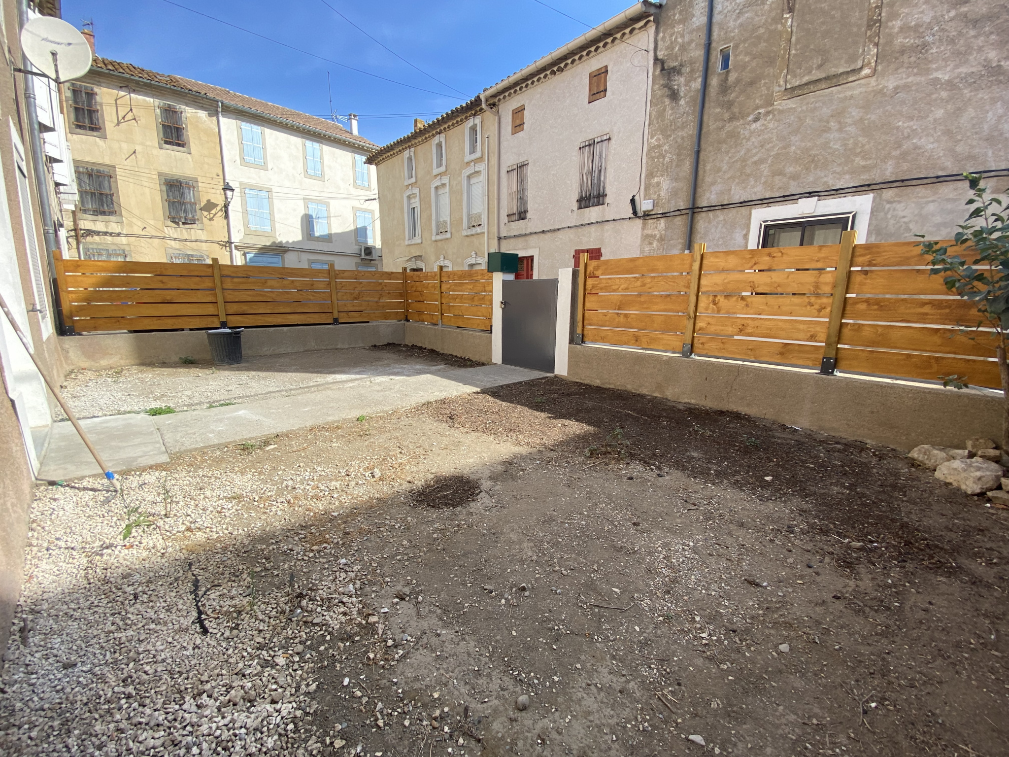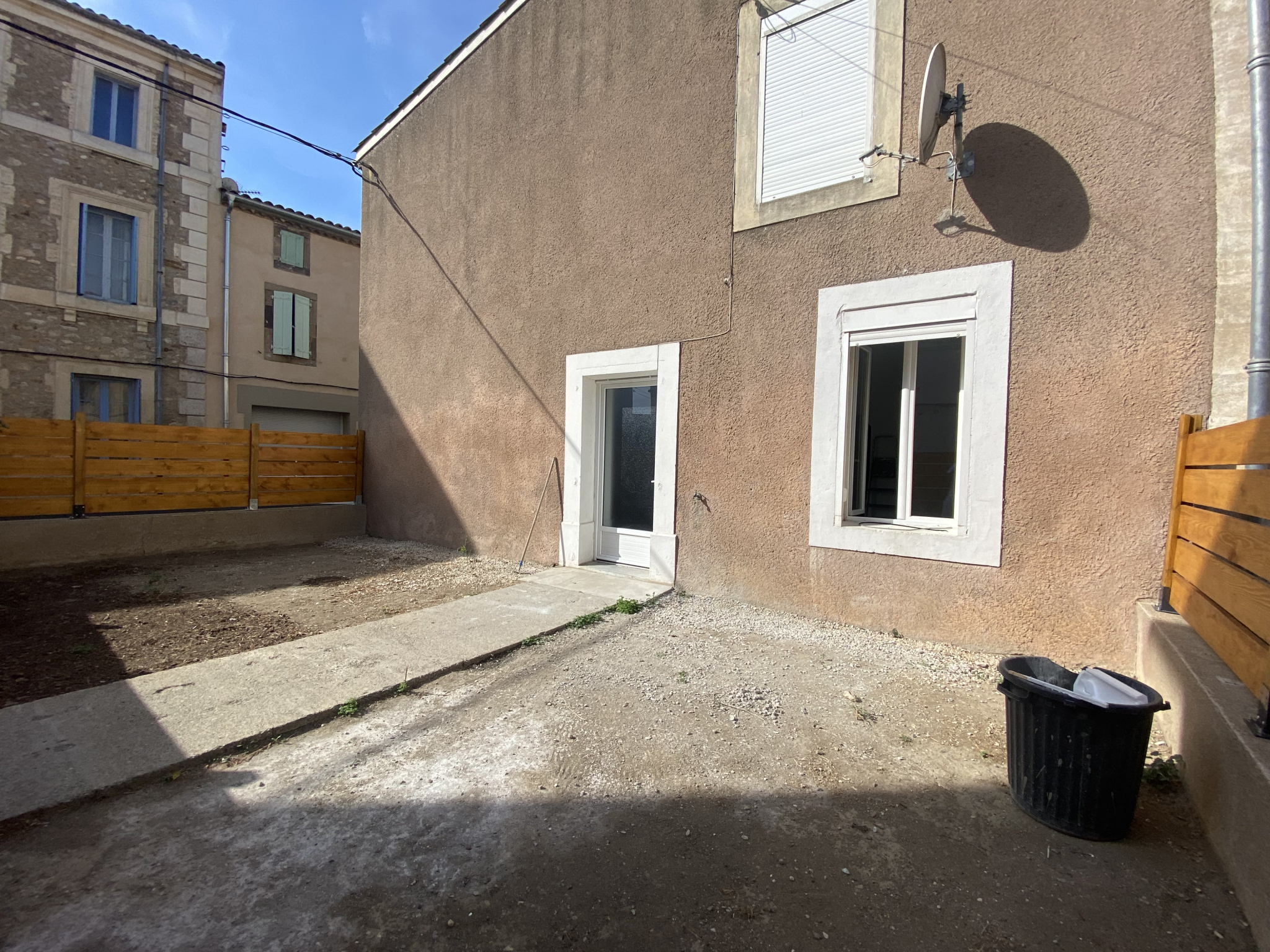 Village toutes commodités à 5 min de Lézignan, maison T3-Bis avec cour privative composée en RDC d'un séjour avec cuisine équipée, une salle d'eau avec W.C., et à l'étage de 2 chambres et un grand bureau.