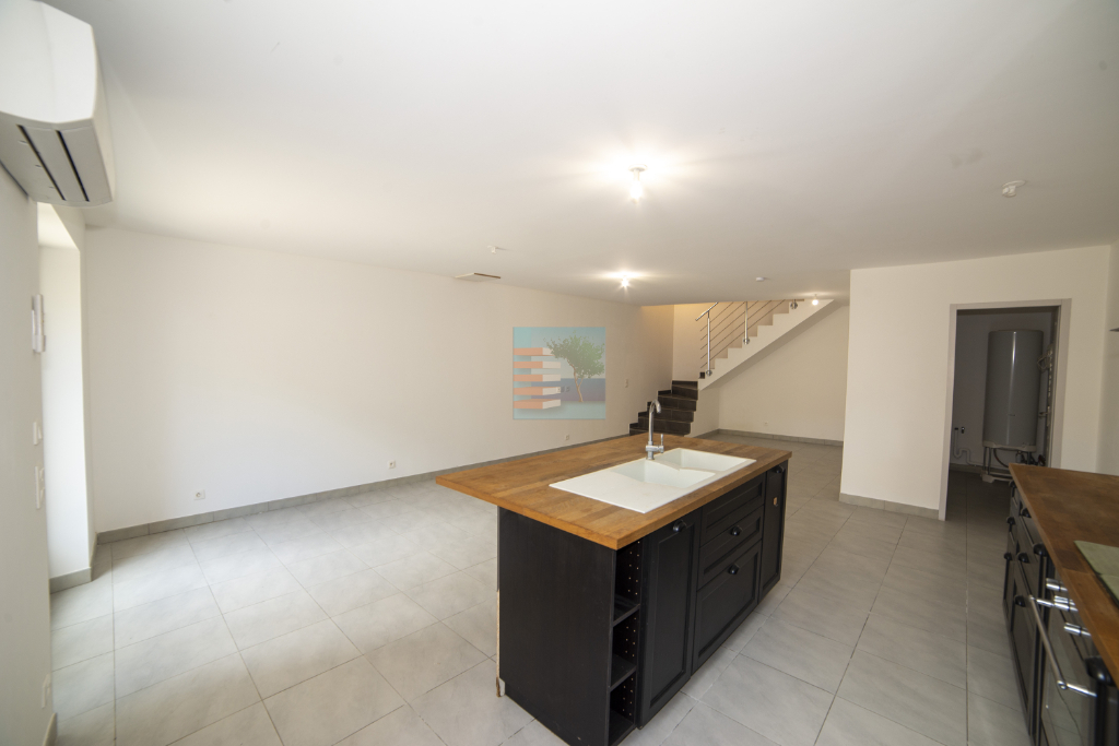 Elle se compose en RDC d'une pièce de vie climatisée avec cuisine aménagée et en partie équipée. Un WC et une buanderie. Au 1er étage, une salle d'eau, un WC, 2 chambres et une pièce supplémentair...