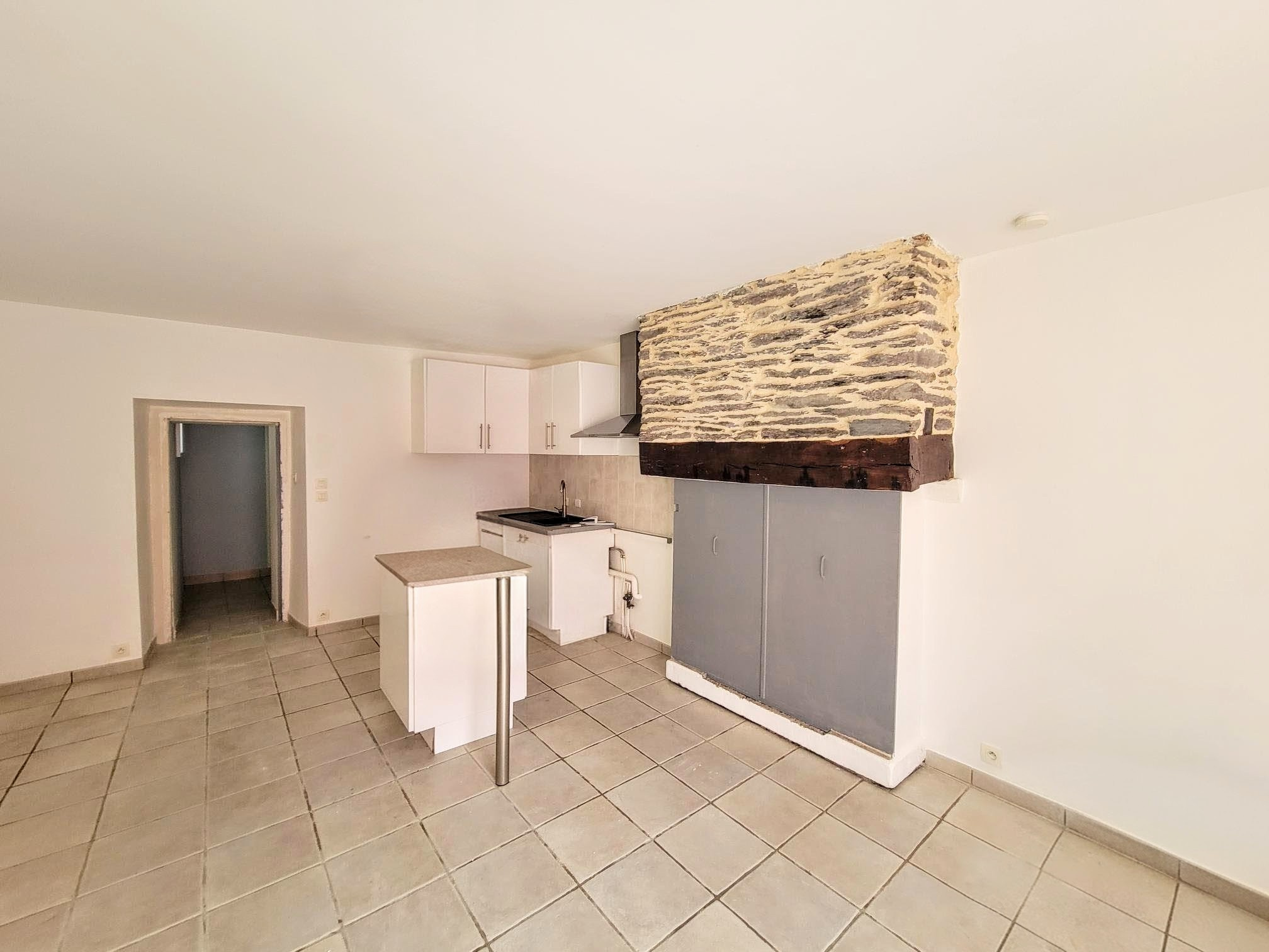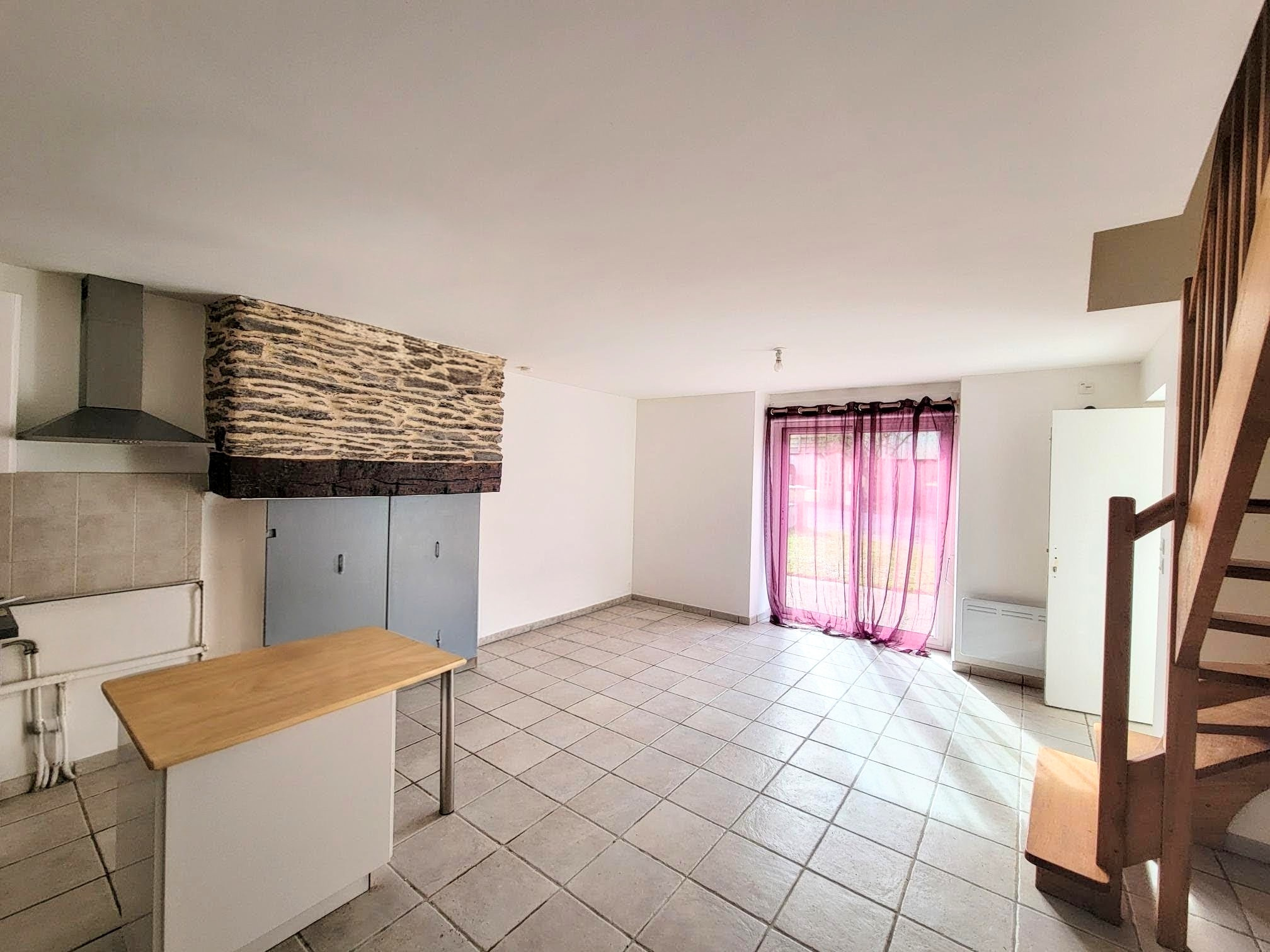 AUGAN A LOUER maison de bourg T3 composée au rez-de-chaussée d'une pièce de vie avec cuisine aménagée ouverte, un dégagement desservant une salle d'eau avec WC, buanderie. A l'étage une mezzanine à usage de bureau, deux chambres, WC. Une cour de...