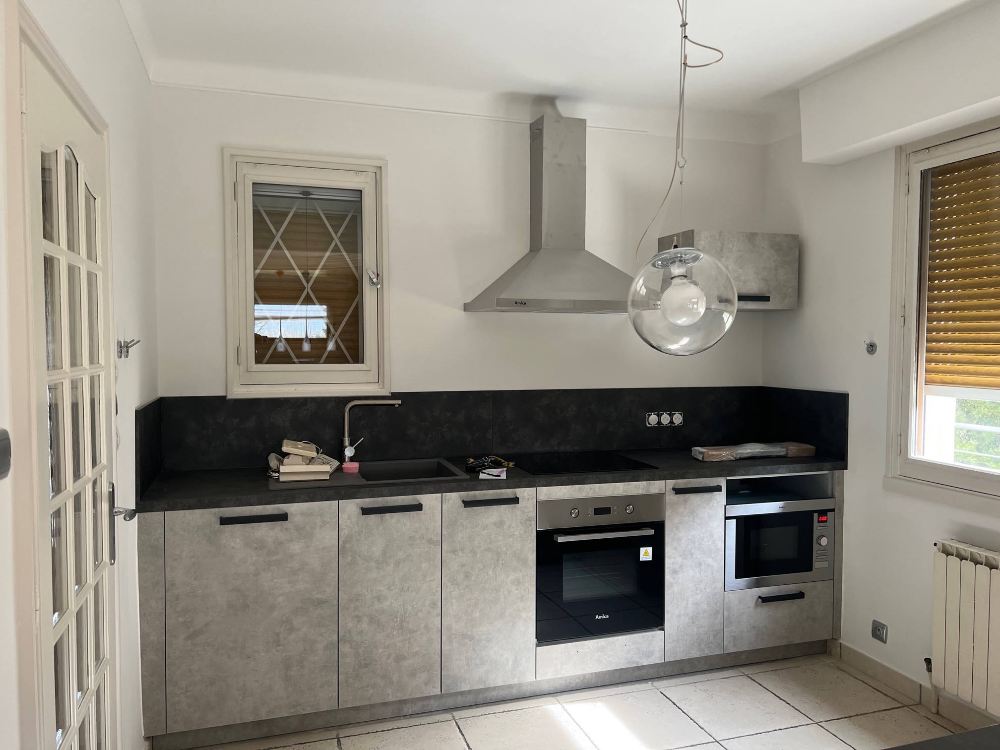 - au rez-de-chaussée : hall d'entrée avec placard - chaufferie/buanderie (avec machine-à-laver) - cuisine semi-équipée (lave-vaisselle...