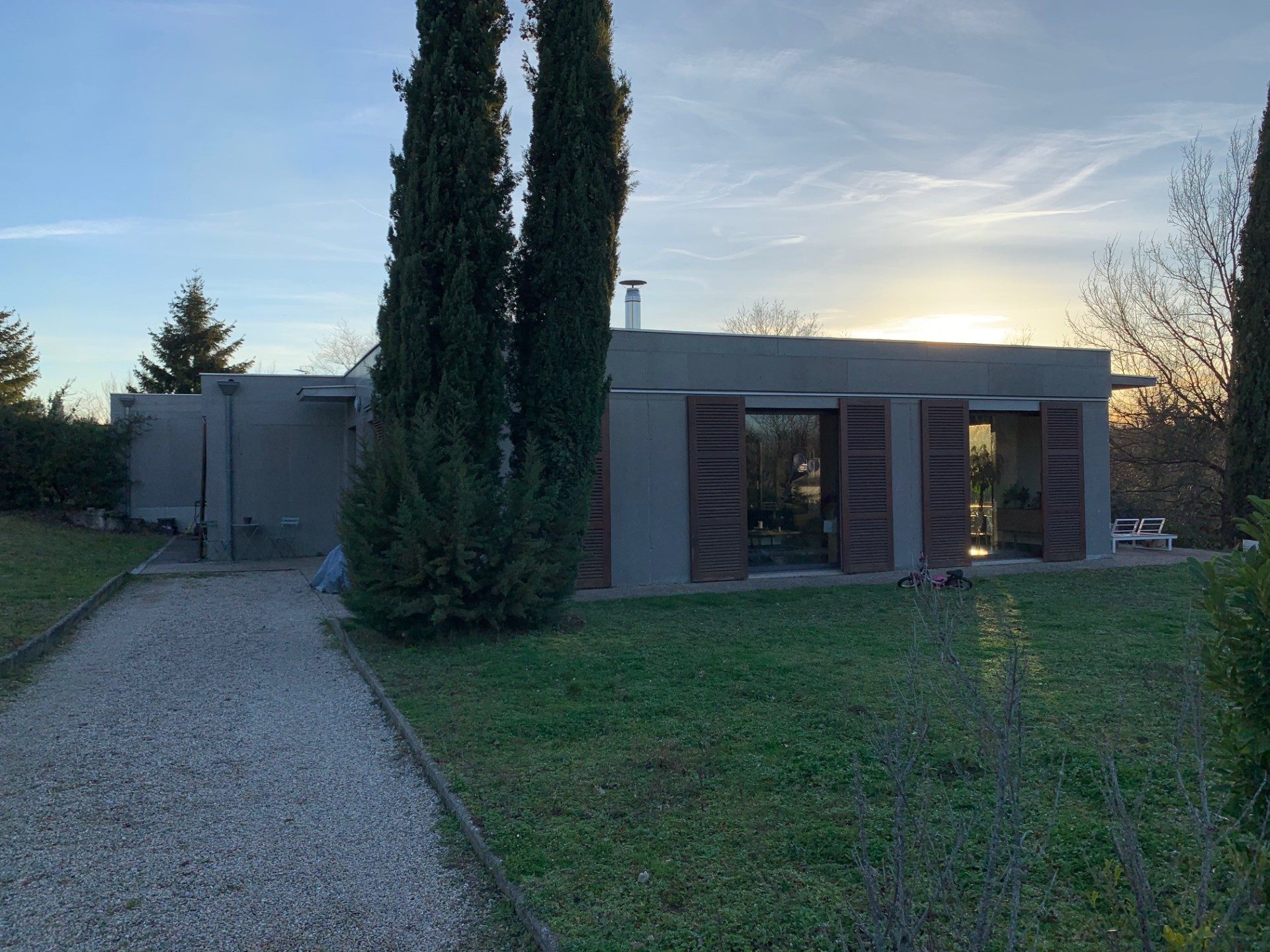 Limite Chaponost. CHEMIN DE MONTLIVET. Dans petite résidence sécurisée, au calme et entourée de verdure, magnifique villa d'architecte de 179,34 m² de plain pied construite en 2004, comprenant: une entrée avec dressing, belle pièce de vie lumineuse avec c...