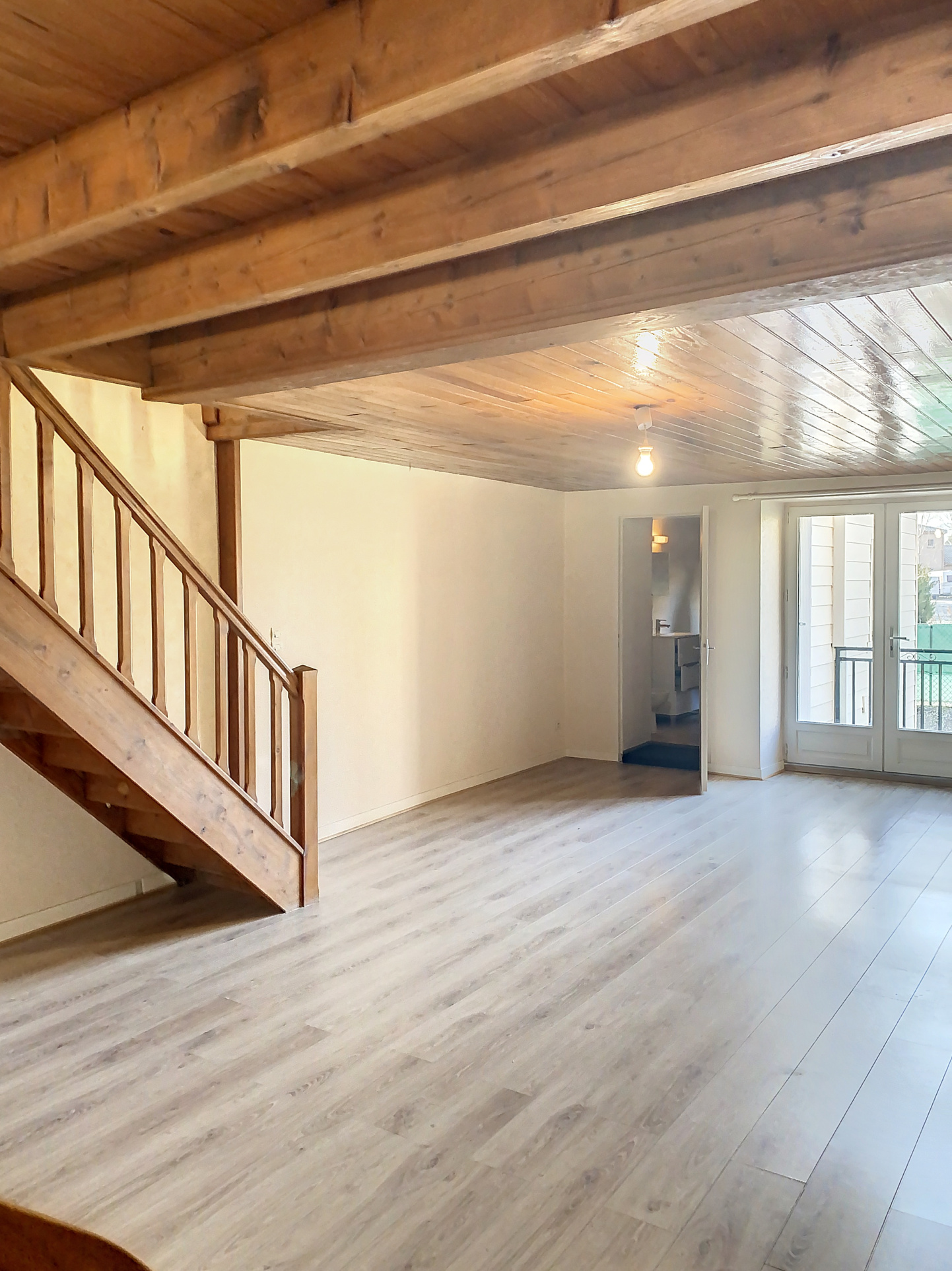 Virieu-le-Grand, à louer une maison entièrement rénovée offrant 56.16 m² habitables, comprenant une cuisine équipée ouverte sur séjour avec un coin bureau et toilette, à l'étage combles isolés avec salle d'eau et toilettes. Autres parties du logement...