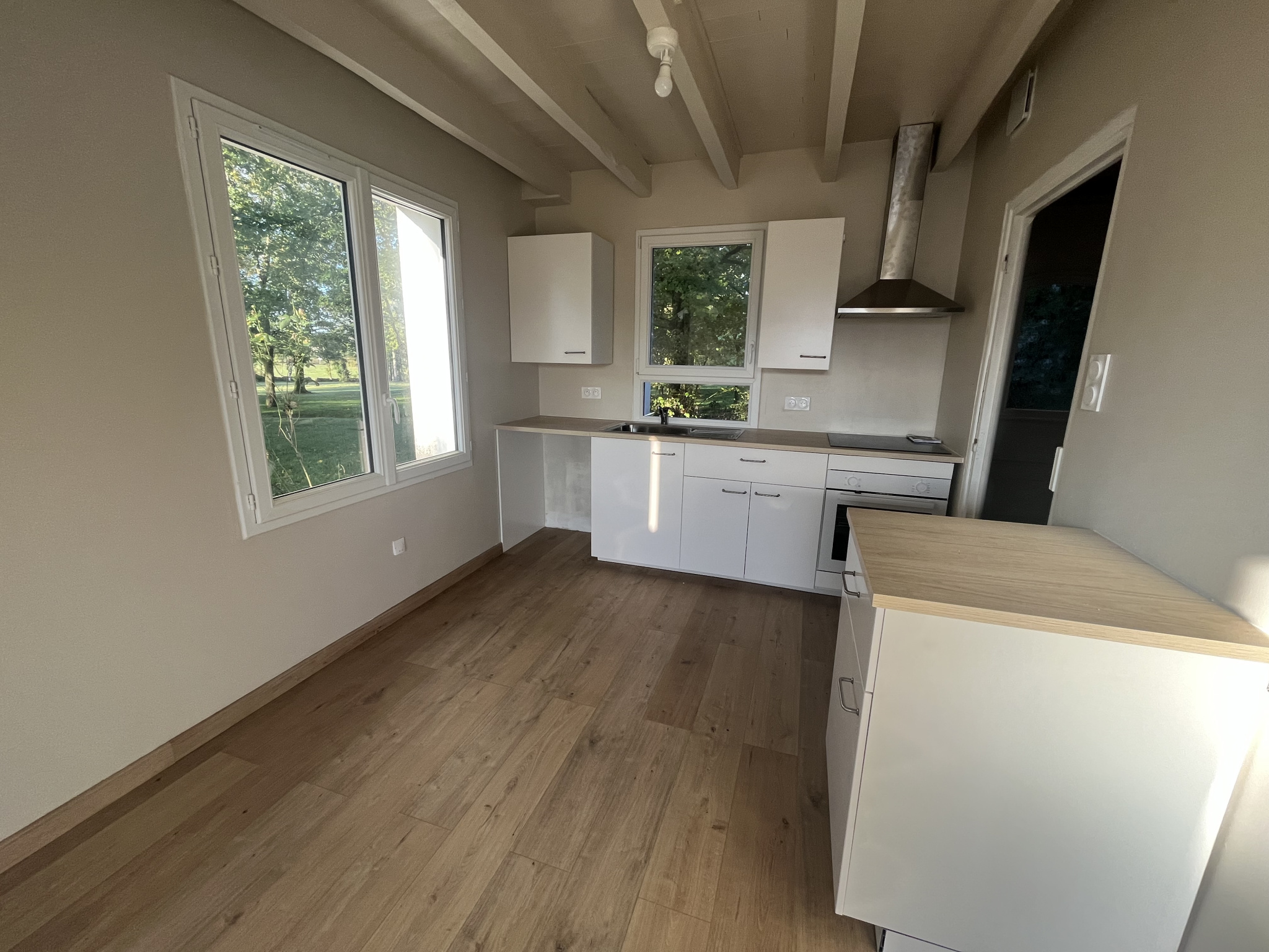 Il se compose d'une pièce de vie très lumineuse, cuisine aménagée avec plaque de cuisson, hotte et four, emplacement lave-vaisselle et frigo, de...