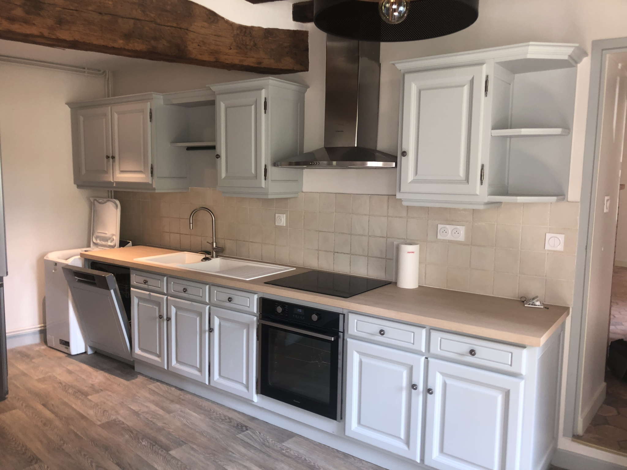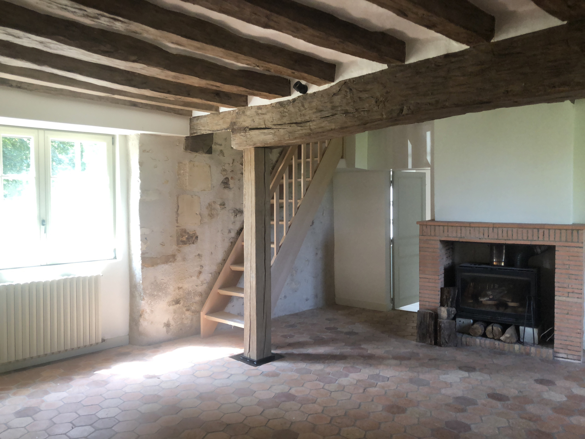 Entre La Flèche et Baugé à Fougeré 49150. Longère rénovée, 4 pièces : séjour avec cheminée, cuisine aménagée et équipée, 2 chambres plus une à l'étage, salle d'eau. Terrain 1000 m2 environ. Loyer 880EUR par mois charges comprises pour 80 EUR (entreti...