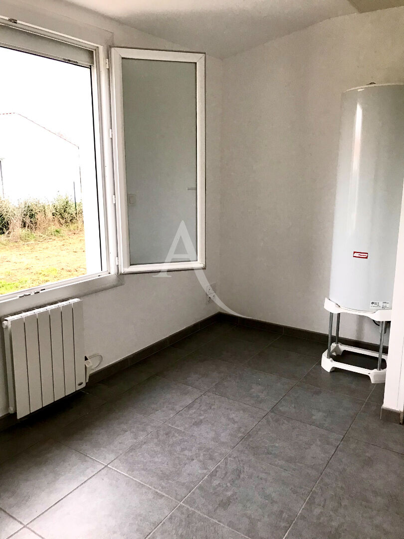 Petite maison composée d'une pièce de vie avec coin cuisine, 1 chambre, salle d'eau avec WC, préau et jardin.