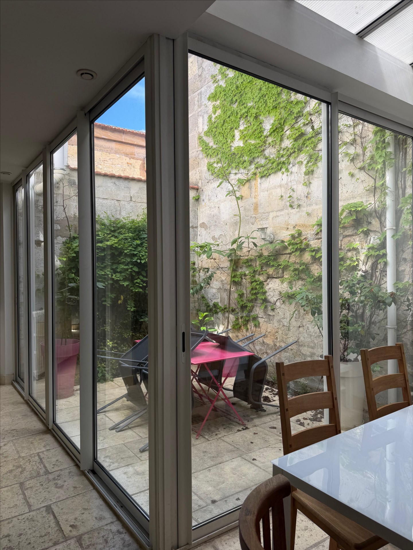 BORDEAUX Parc rivière, à proximité des Chartrons et du Jardin Public, maison rénovée, comprenant une entrée, un séjour double, une cuisine séparée et aménagée, deux chambres, un bureau, une salle d'eau, un sous-sol aménagé, un jardinet.