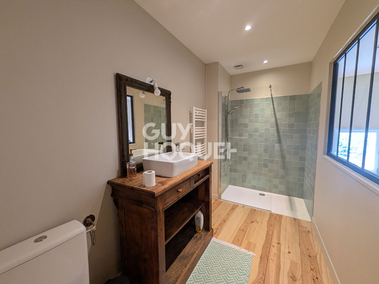 UNE GRANDE ENTREE COUVERTE, UNE CUISINE, UN VASTE SEJOUR, UNE CHAMBRE, SALLE DE BAINS AVEC DOUCHE, W.C.