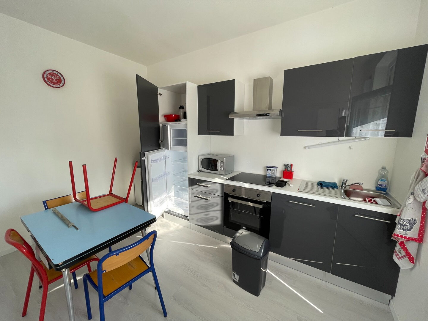 UNE ENTREE DESSERVANT UNE BELLE CUISINE NEUVE ET EQUIPEE TRES FONCTIONNELLE (meubles, plaques de cuisson, four, hotte, micro-ondes et lave vaisselle), GRANDE PIECE DE ...