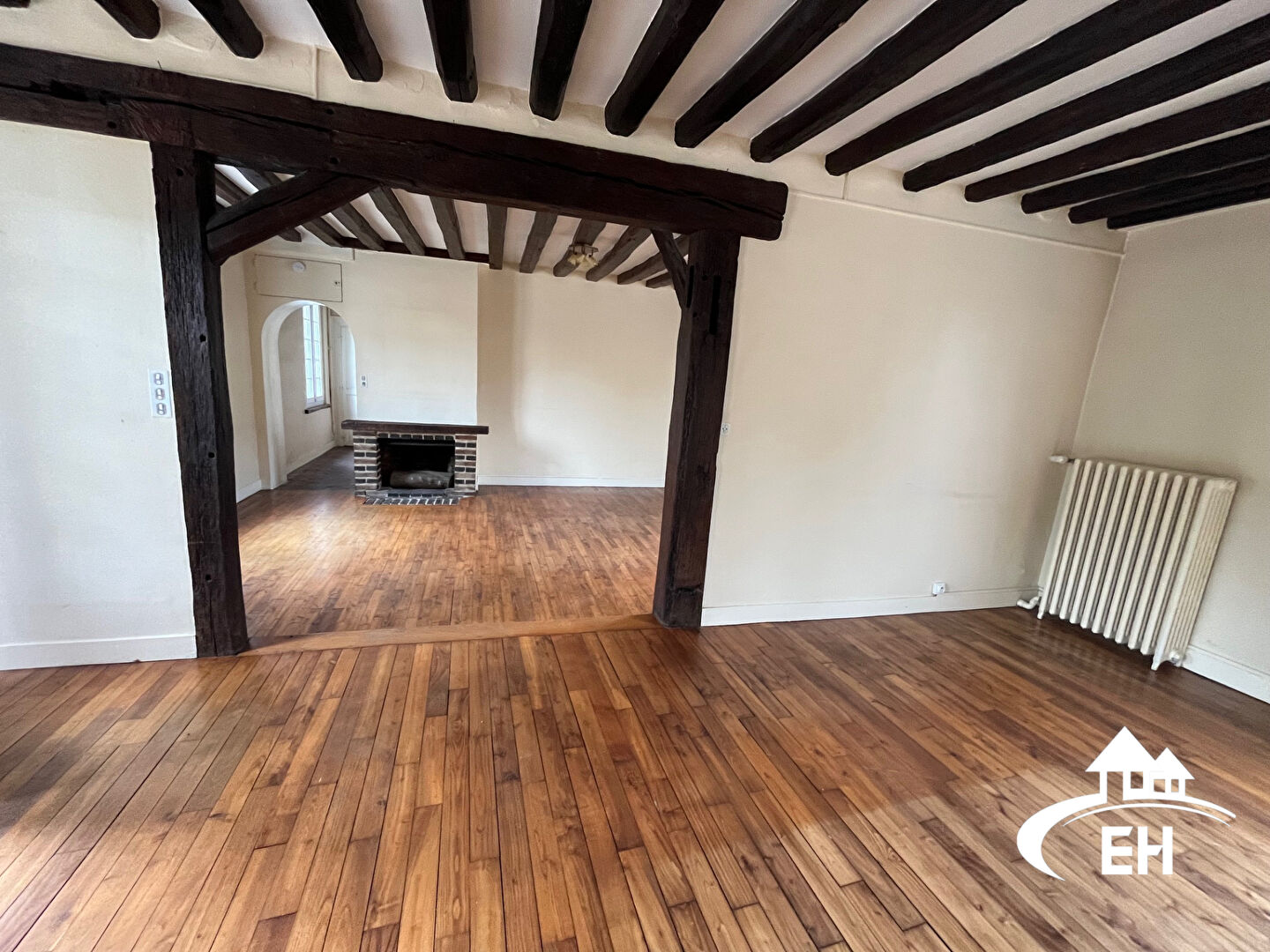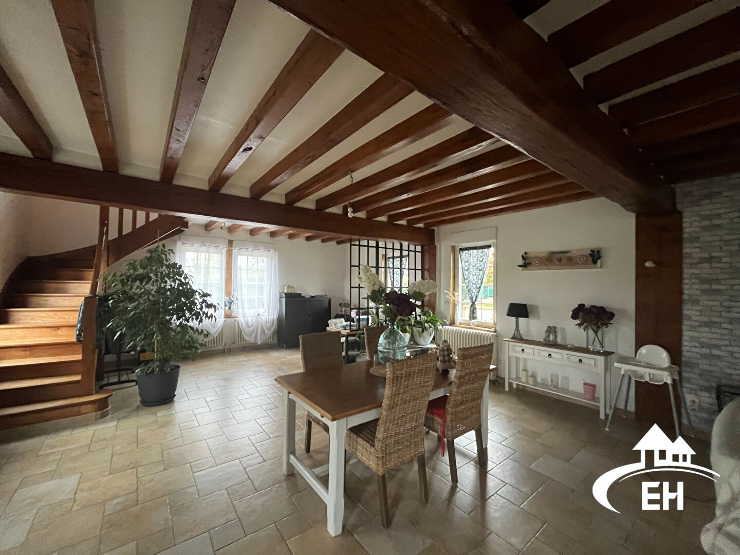 BELLE PRESTATION - Longère de 134 m² comprenant au rez-de-chaussée vaste séjour de 46 m² avec cheminée, bureau de 16 m², cuisine aménagée et équipée (plaque, hotte, four et frigo), buanderie et wc. A l'étage, pallier avec rangements donnant accès à deux b...