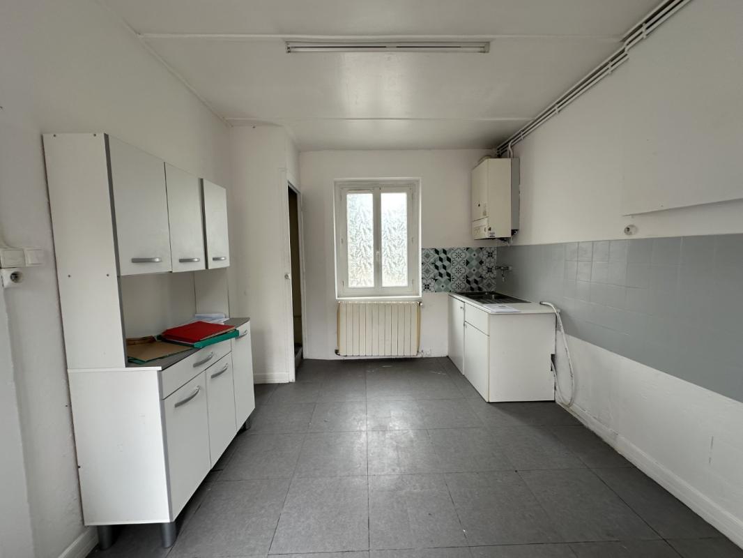 Maison composée au rez-de-chaussée d'une entrée donnant sur cuisine, un salon, un séjour. A l'étage, deux chambres, une salle de bains avec wc.