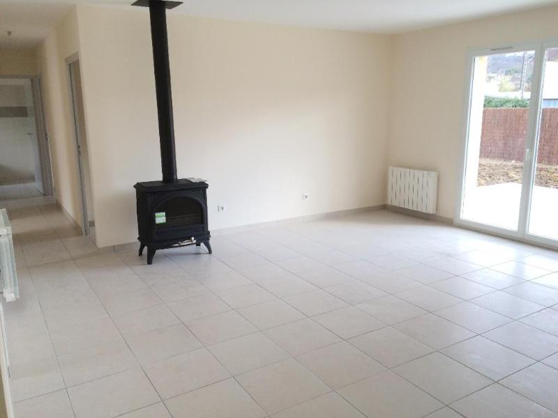De plain-pied : Une entrée avec placard, 3 chambres, beau salon séjour avec Poêle, cuisine séparée aménagée, salle de bains (douche + baignoire), wc, placards.