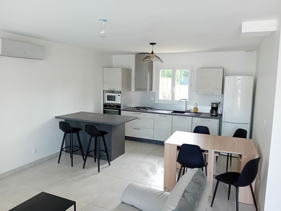 Dans un lotissement récent, proche du centre-ville et des commodités, au CALME, une maison jumelée de 60m2 composé d'un grand séjour de 30m2 climatisé avec cuisine équipée (four/ plaque et hotte) ouvert sur une terrasse et jardin avec piscine entièrement ...