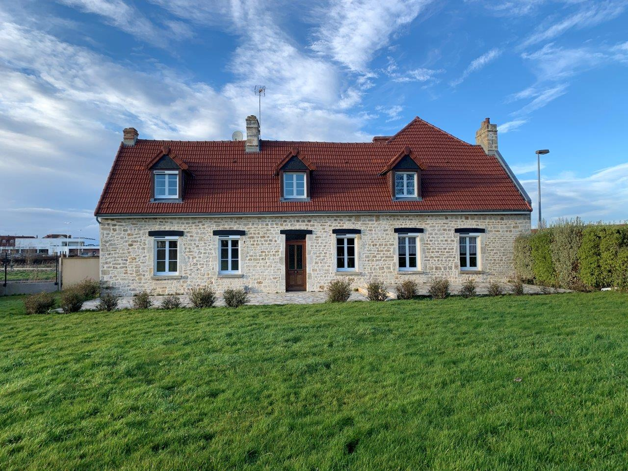 Maison individuelle en parfait état comprenant : entrée en salon avec poêle à granulés, séjour, une grande chambre au-dessus avec douche, lavabo et dressing, belle cuisine aménagée et équipée, wc, buanderie.A l'étage : trois chambres, salle de bains avec ...