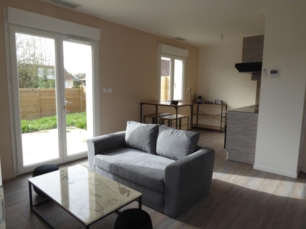 Mer, maison neuve meublée, séjour avec coin cuisine aménagée et équipée, salle d'eau, deux chambres avec placards. Place de stationnement, jardin et avec terrasse Tout est compris dans les charges. Disponible de suite.