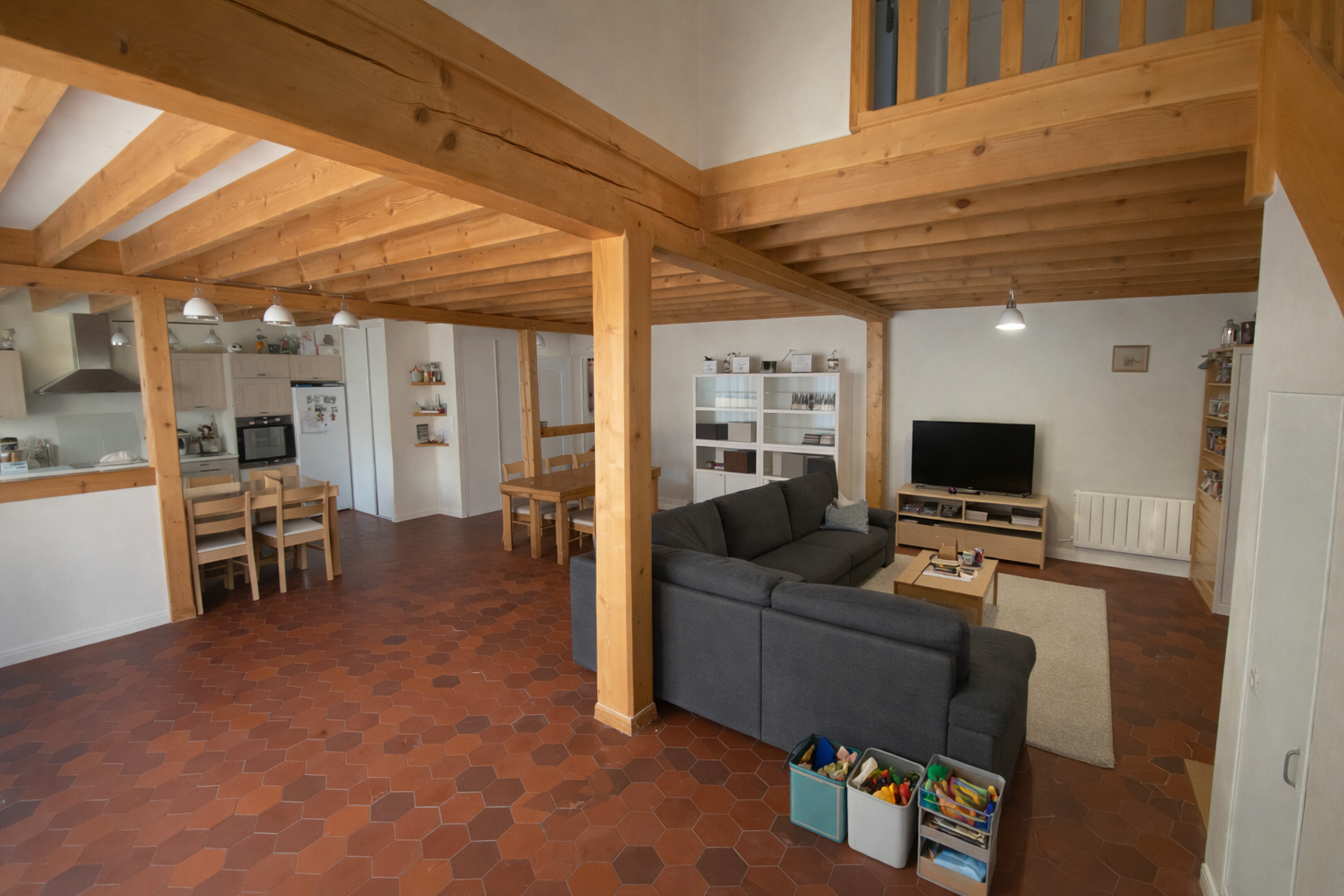 Salon avec coin cuisine équipée, 3 chambres dont une très grande.
